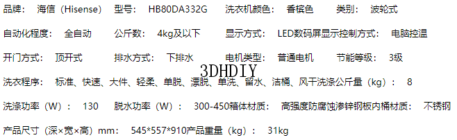 商品名称:【S】海信轮洗衣机 全自动 8公斤家用大容量 10大洗衣程序 桶清洁 静音 防缠绕