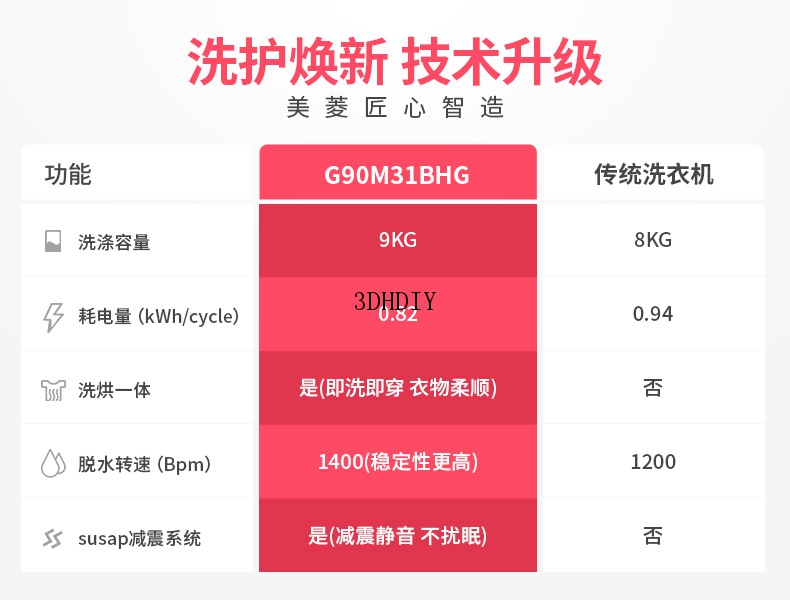 商品名称:【S】美菱洗衣机 9公斤kg变频滚筒洗衣机 全自动家用大容量洗烘一体