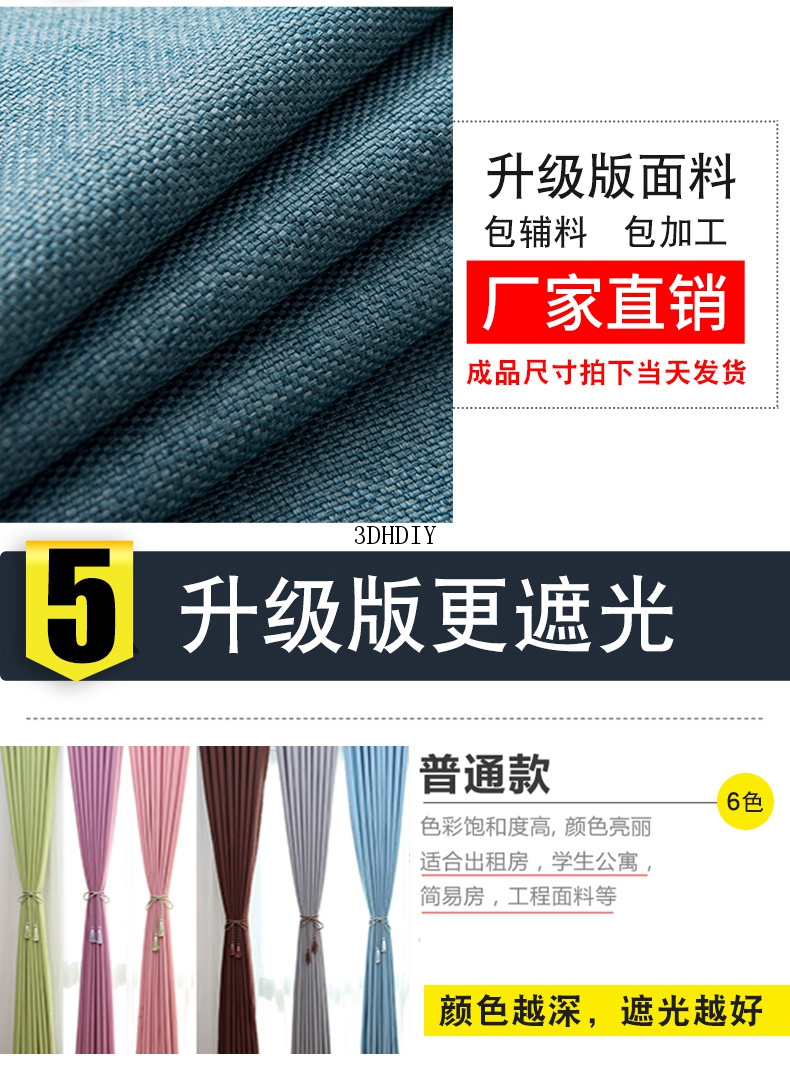 商品名称:现代简约纯色棉麻窗帘北欧亚麻成品定制卧室客厅窗纱帘阳台遮光布