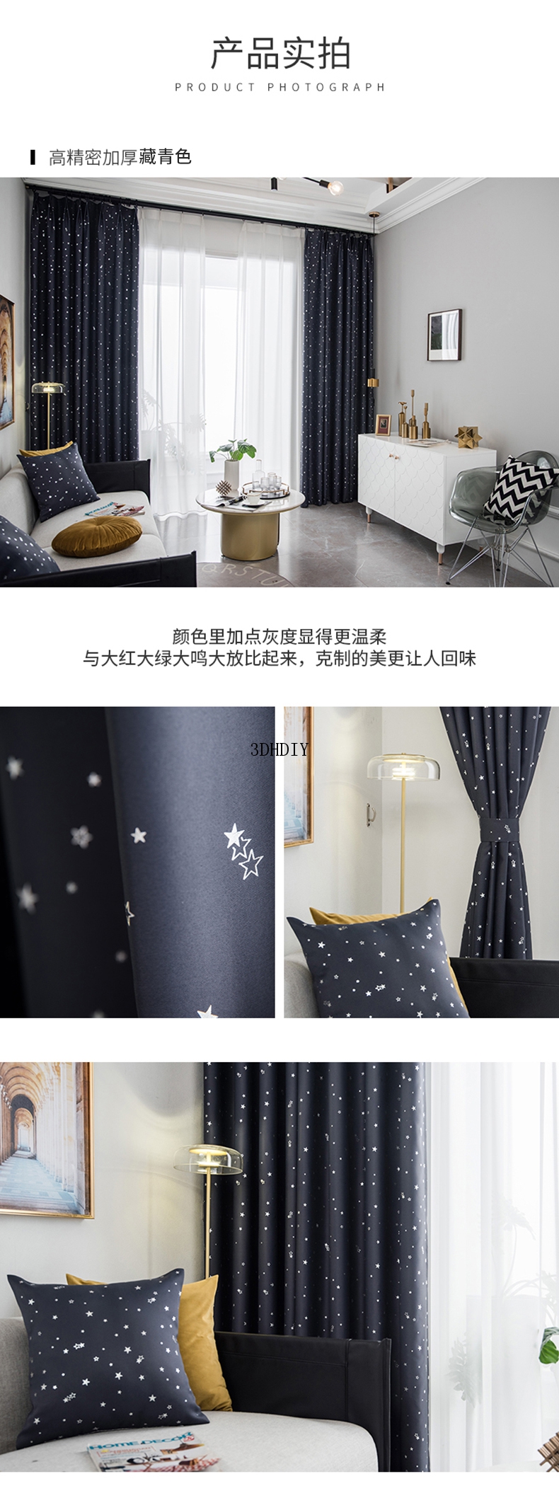 商品名称:现代简约网红加厚窗帘北欧风星星全遮光隔热客厅卧室飘窗成品定制