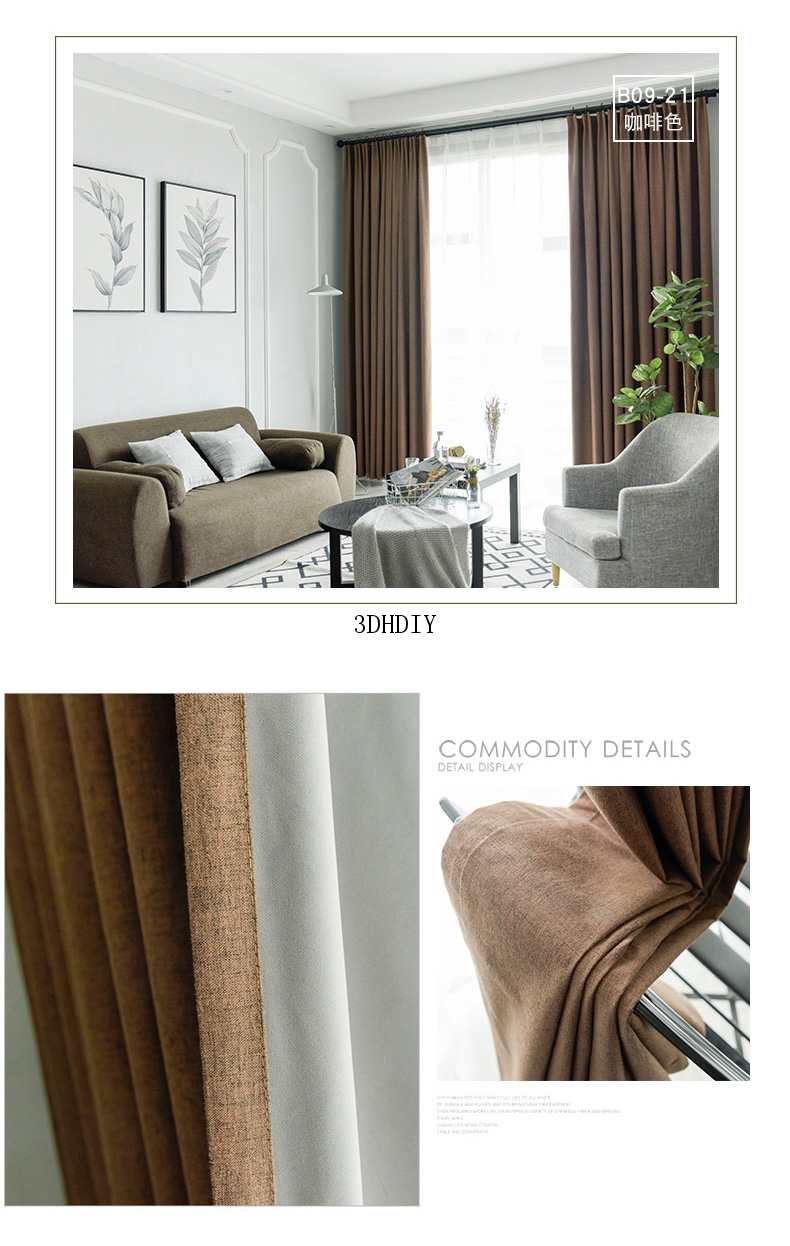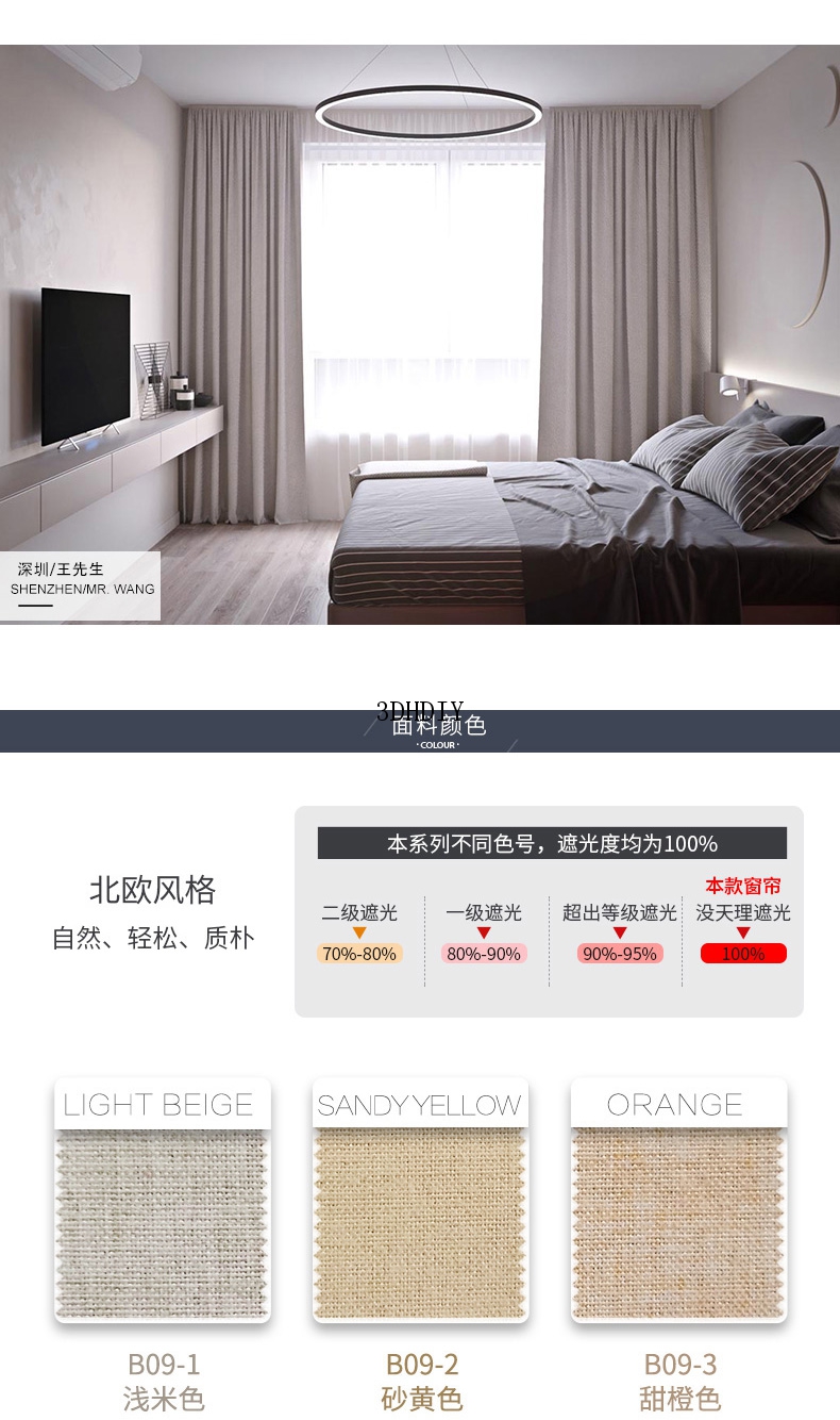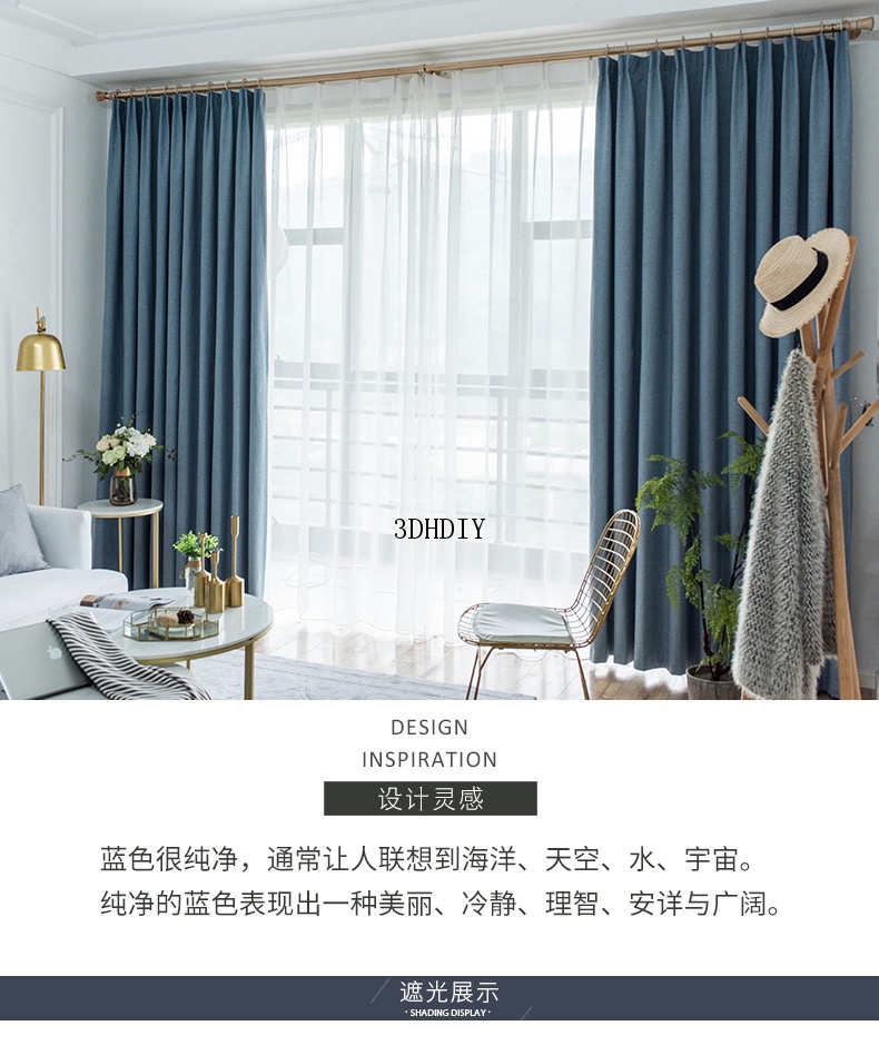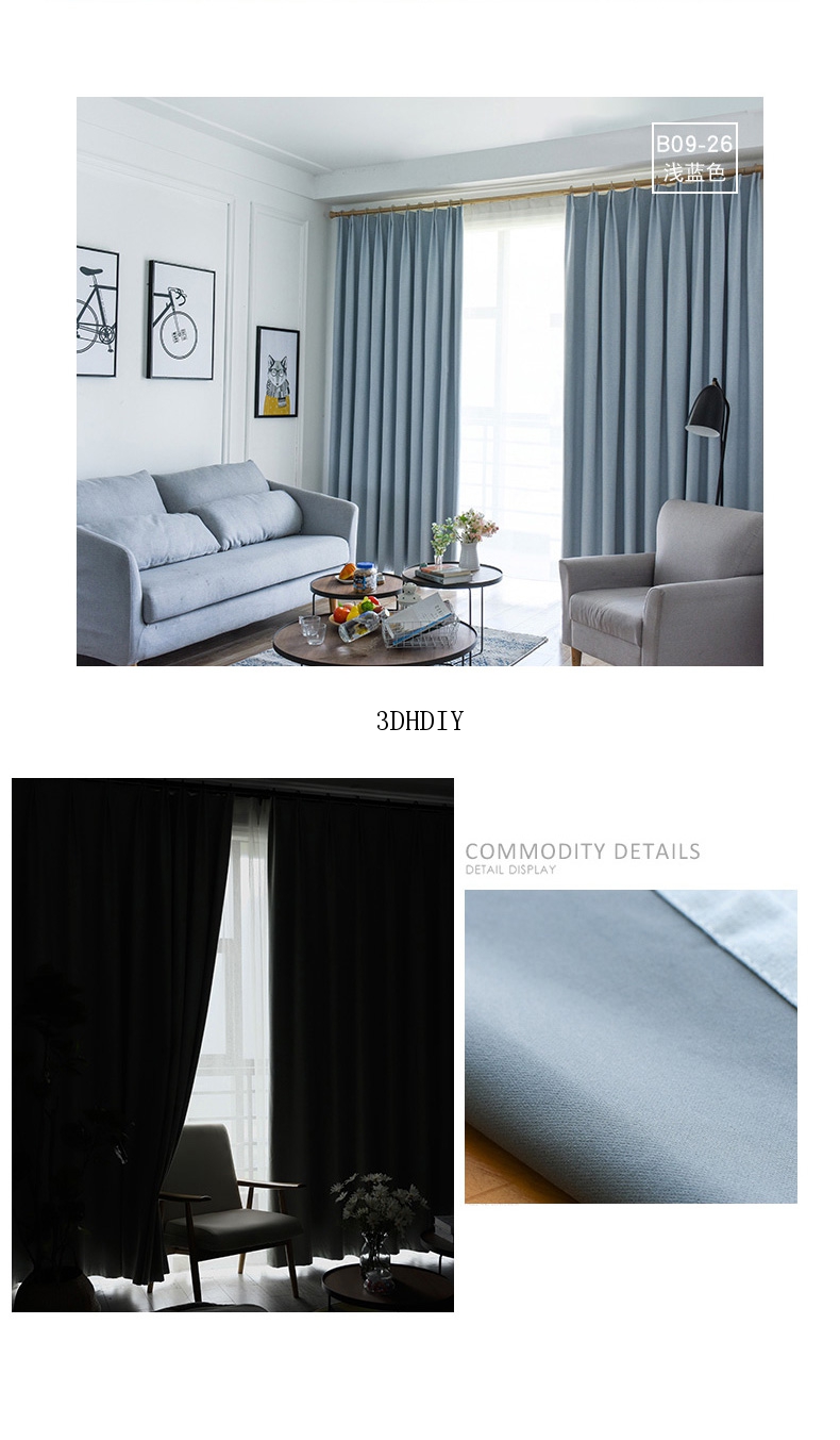 商品名称:100%全遮光加厚窗帘成品定制简约北欧客厅窗帘布纯色飘窗卧室落地