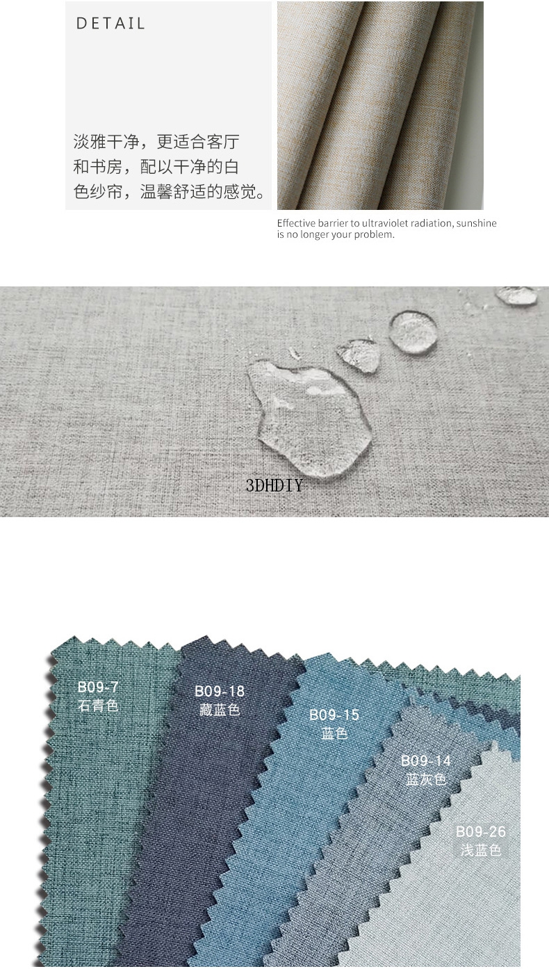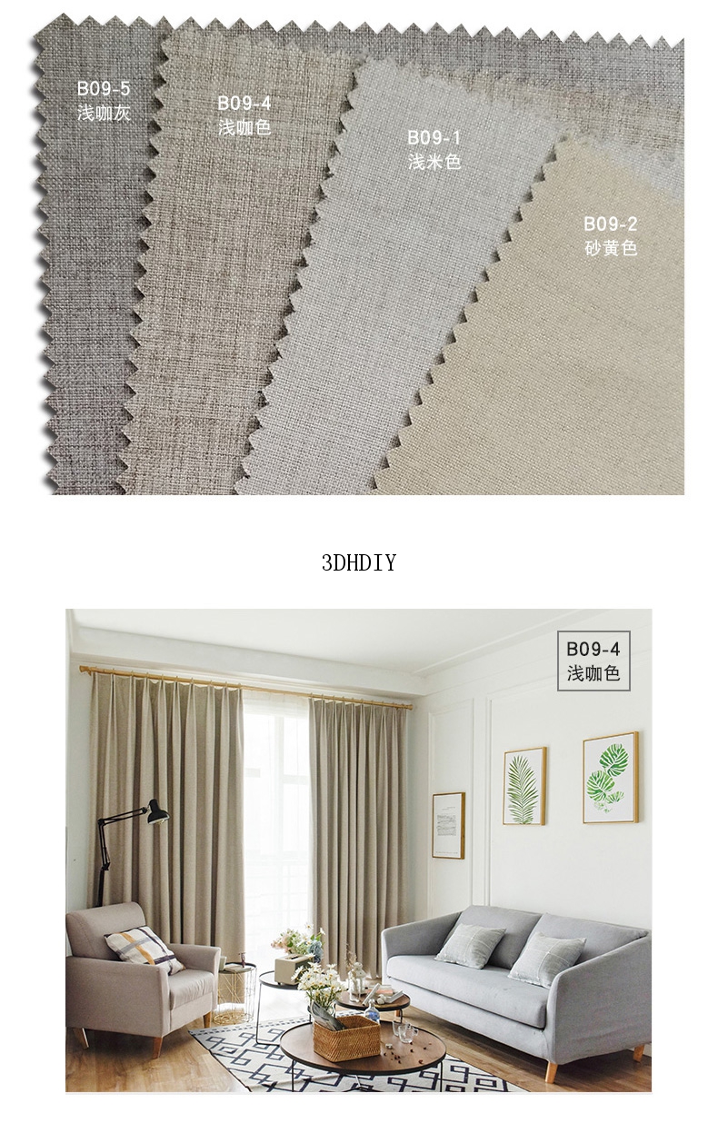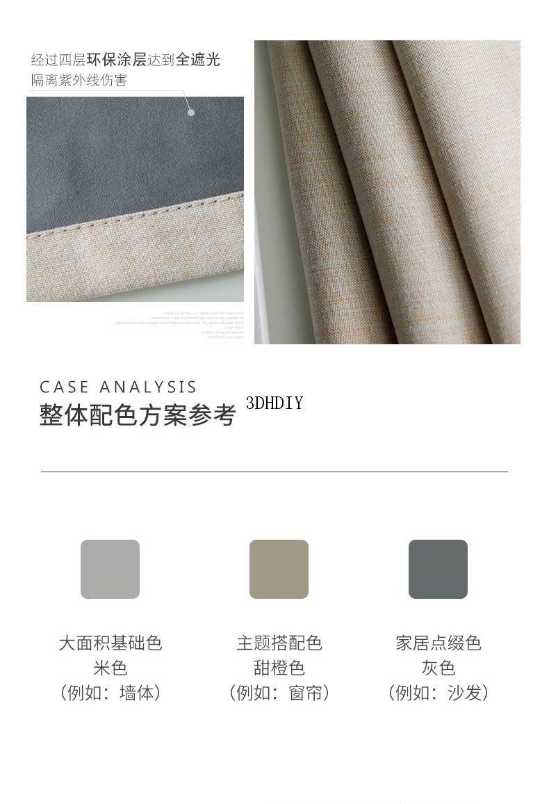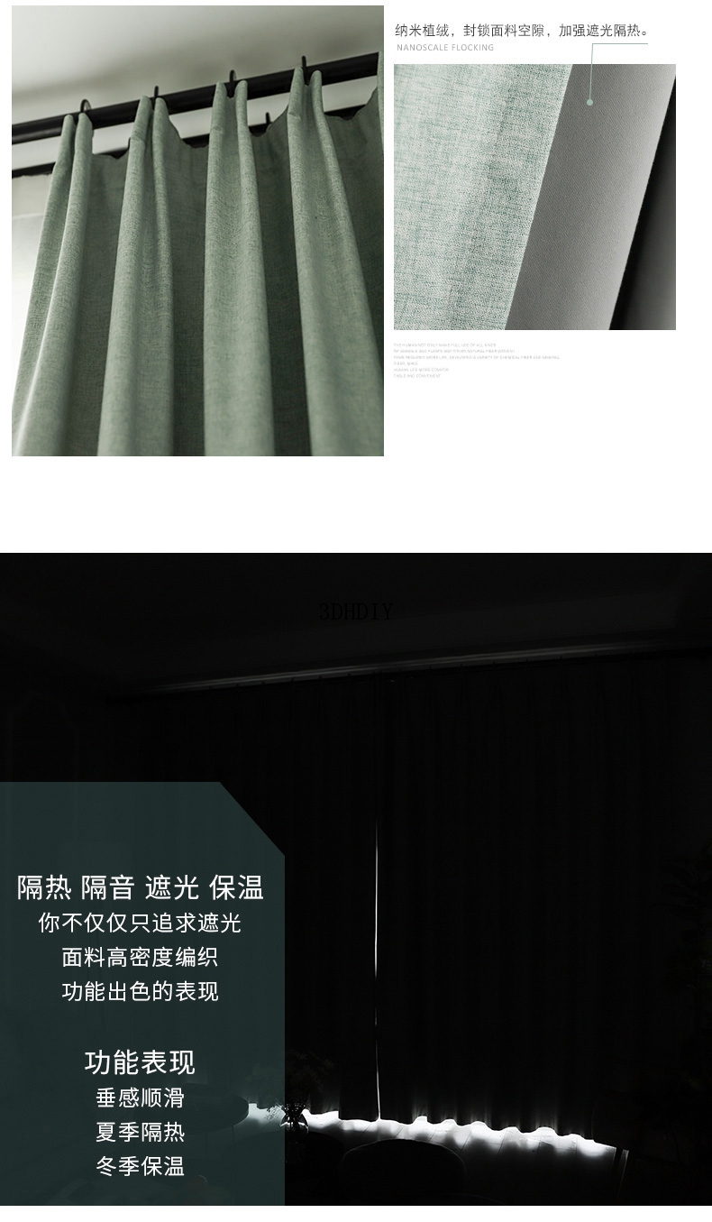 商品名称:100%全遮光加厚窗帘成品定制简约北欧客厅窗帘布纯色飘窗卧室落地