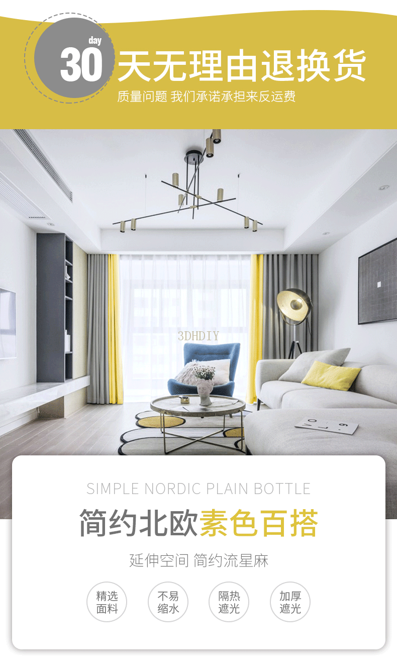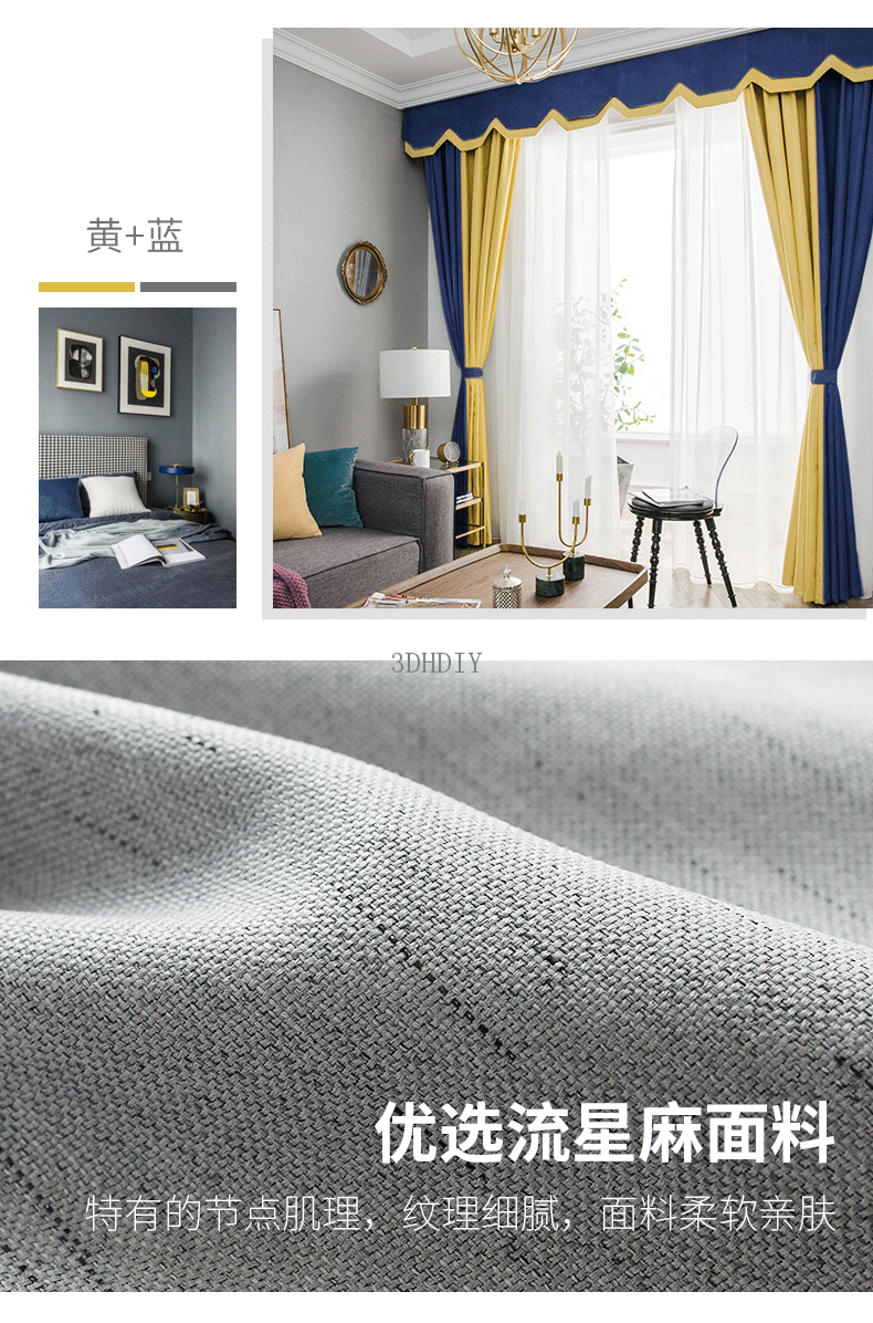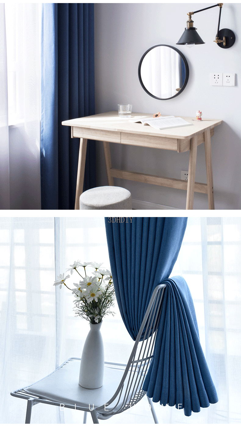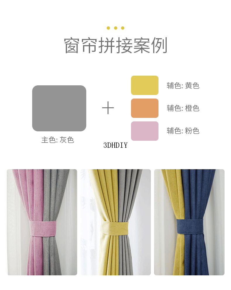 商品名称:现代简约北欧风窗帘纯色拼接棉麻遮光客厅卧室飘窗窗纱定制成品布