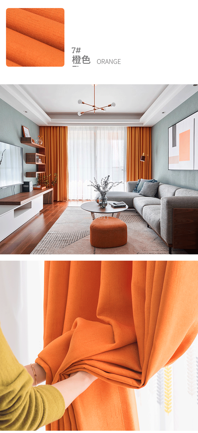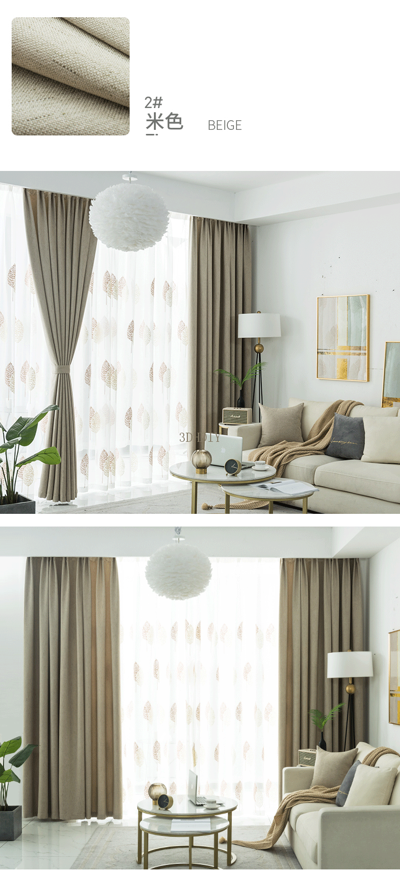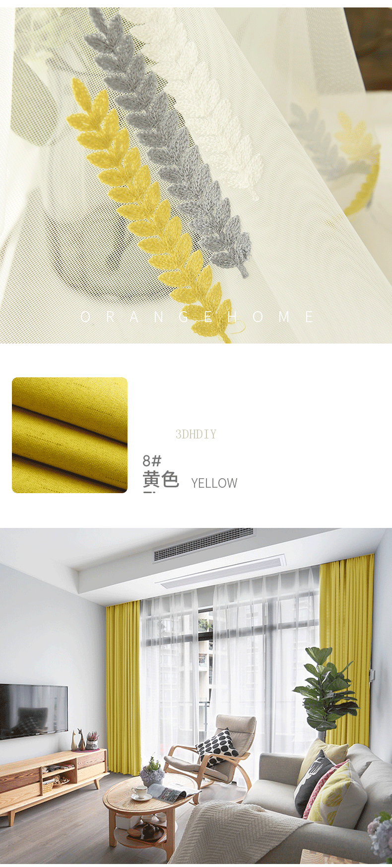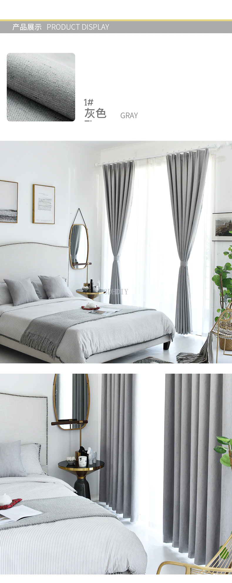 商品名称:现代简约北欧风窗帘纯色拼接棉麻遮光客厅卧室飘窗窗纱定制成品布