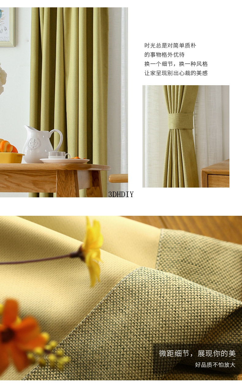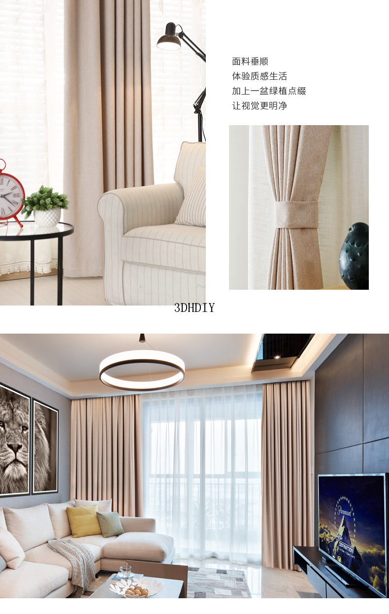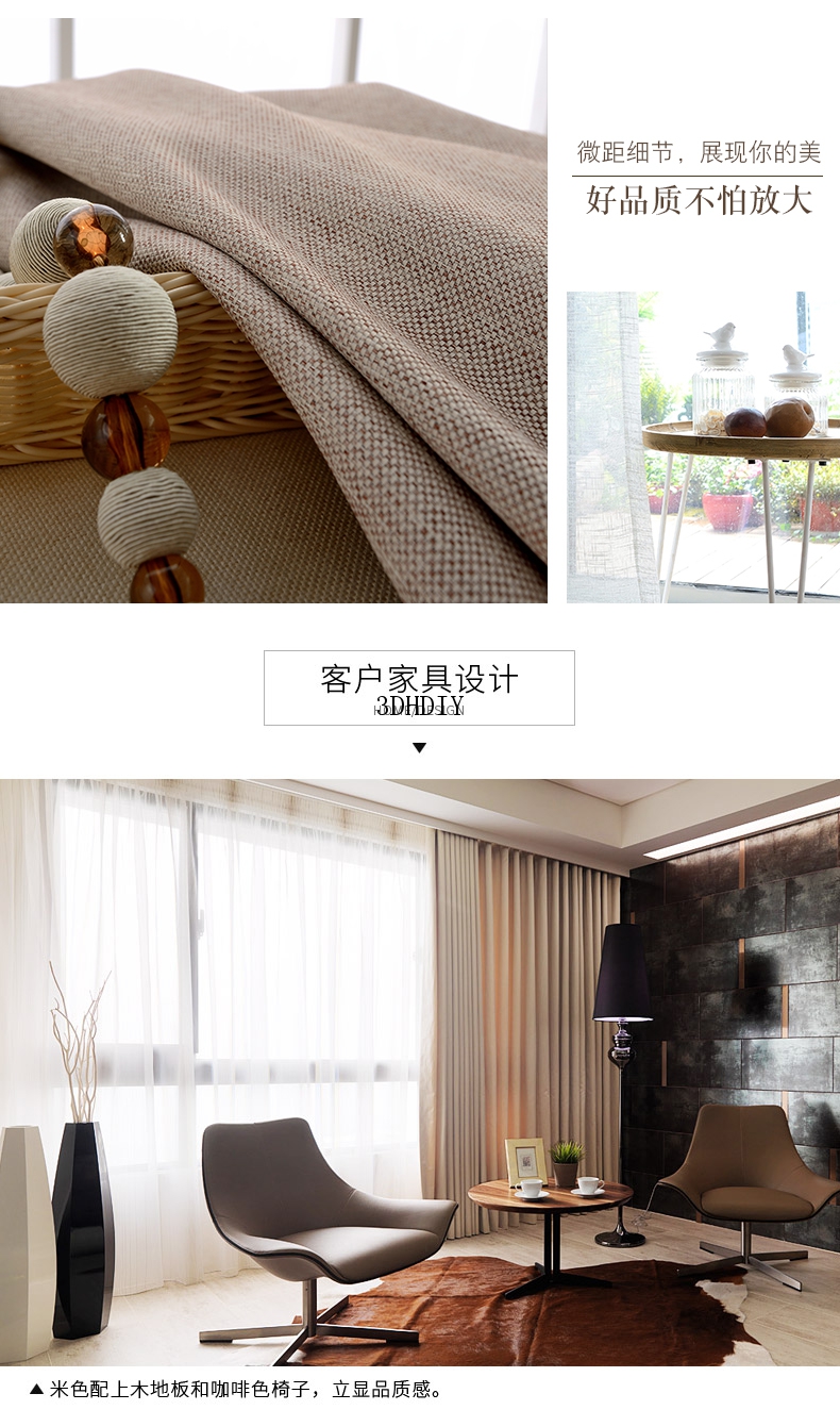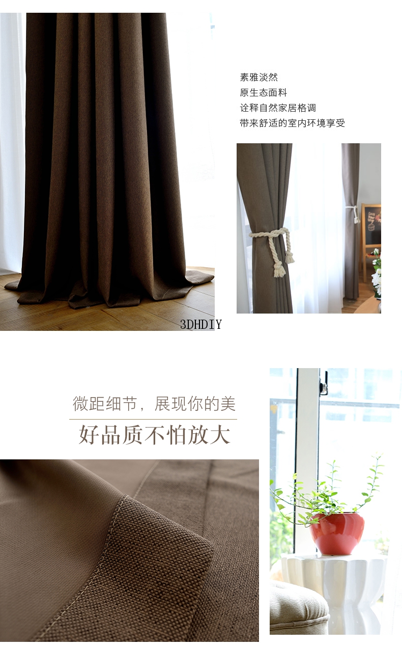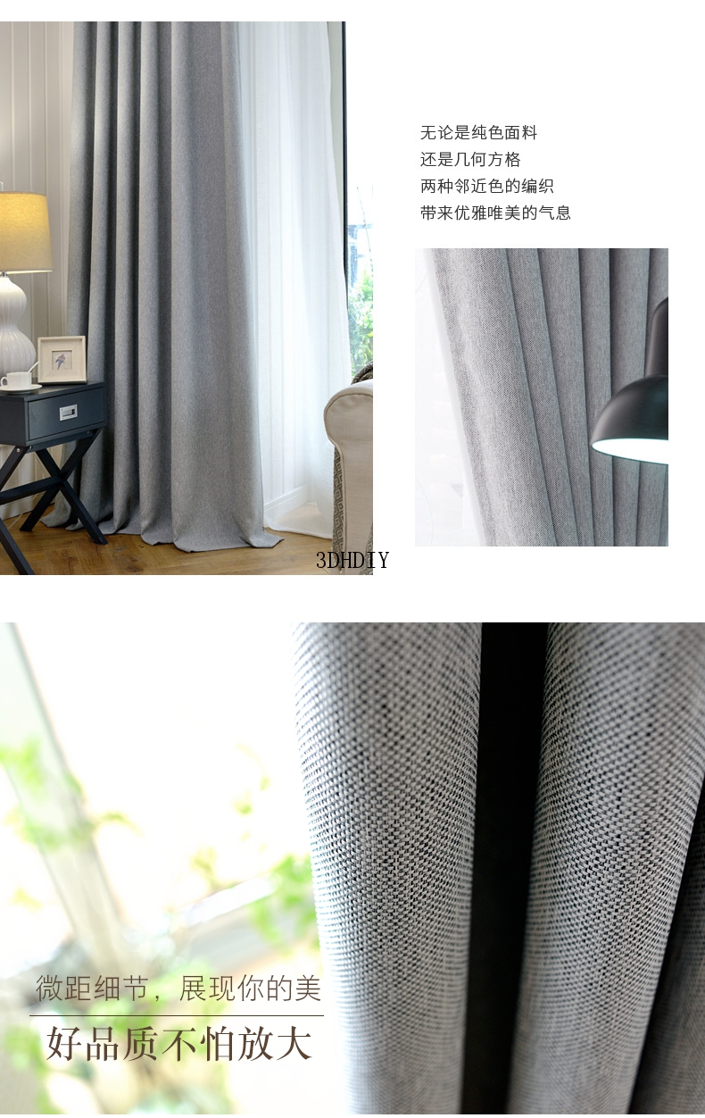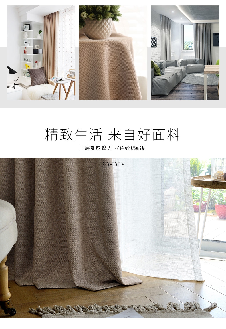 商品名称:全遮光亚麻窗帘布料成品定制简约现代卧室客厅落地窗北欧风飘窗帘