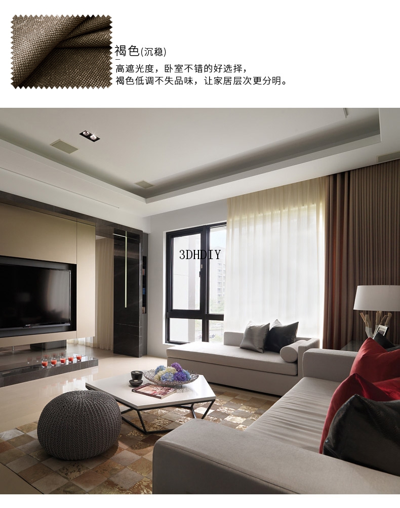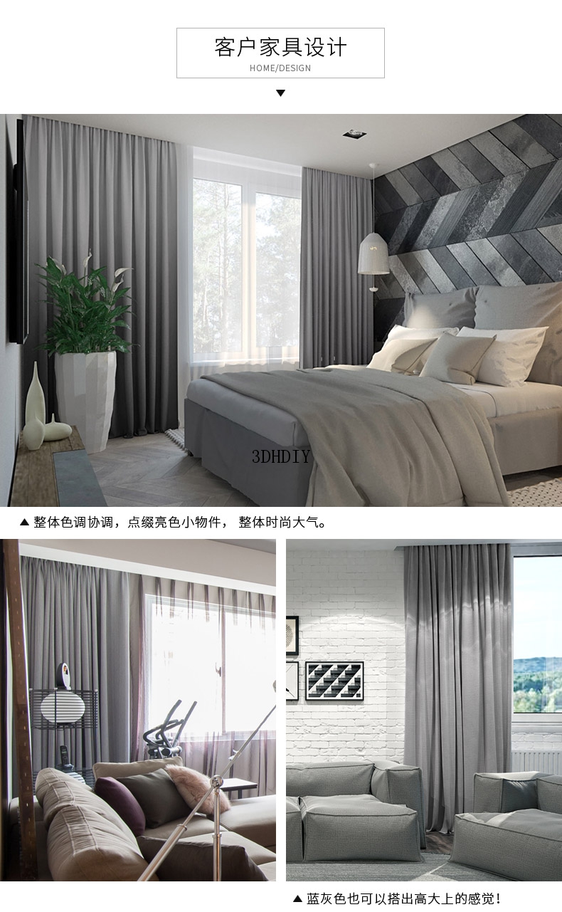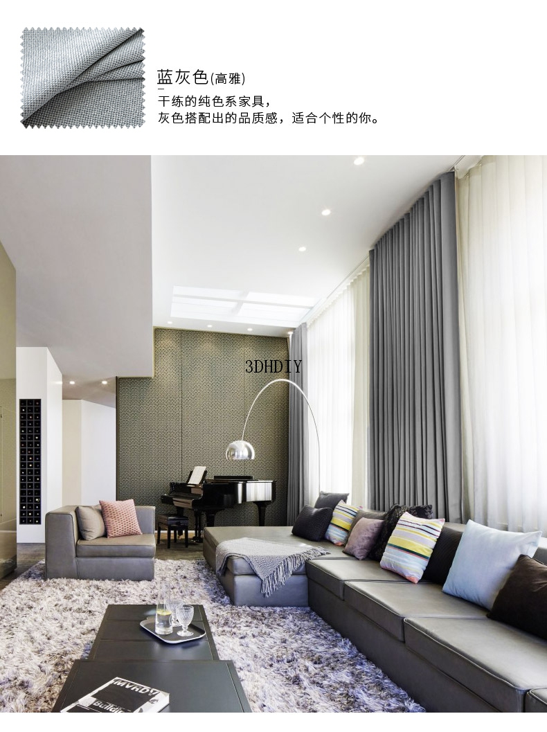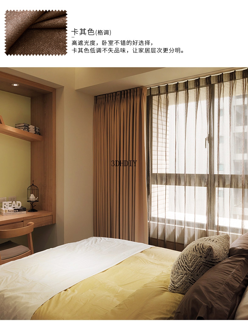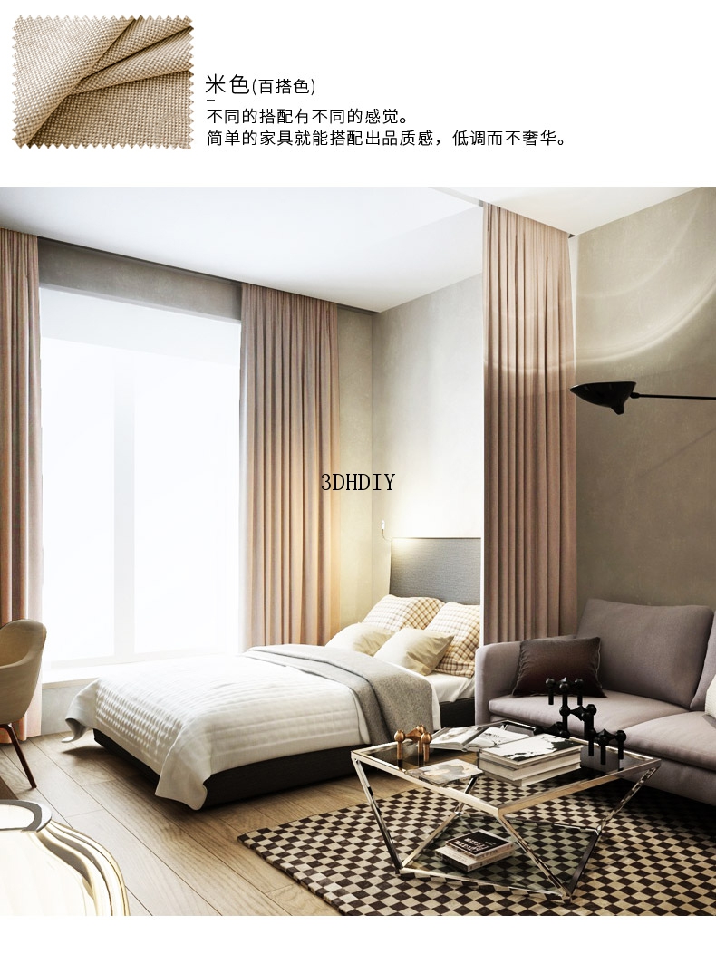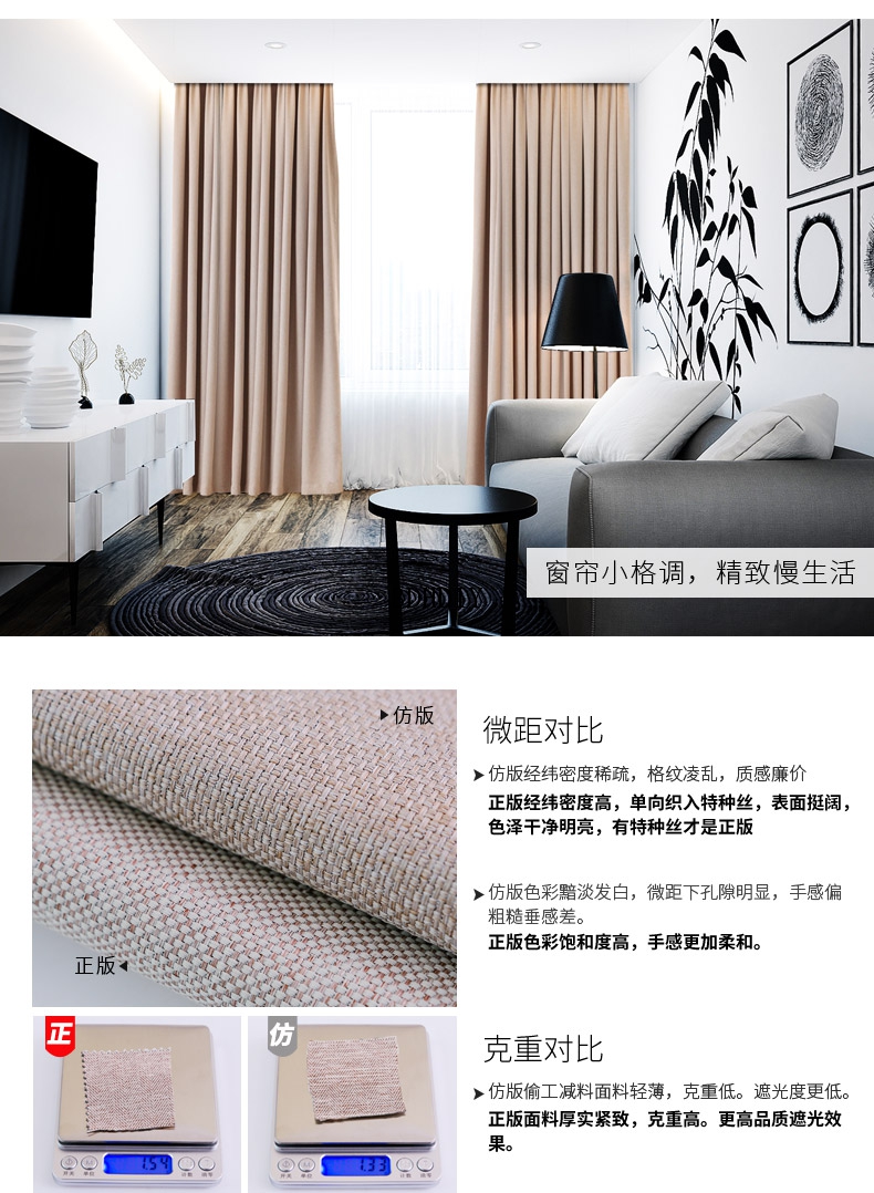 商品名称:全遮光亚麻窗帘布料成品定制简约现代卧室客厅落地窗北欧风飘窗帘