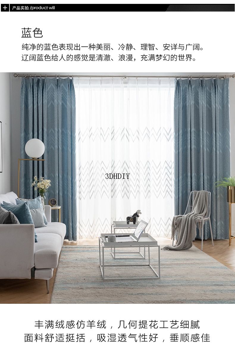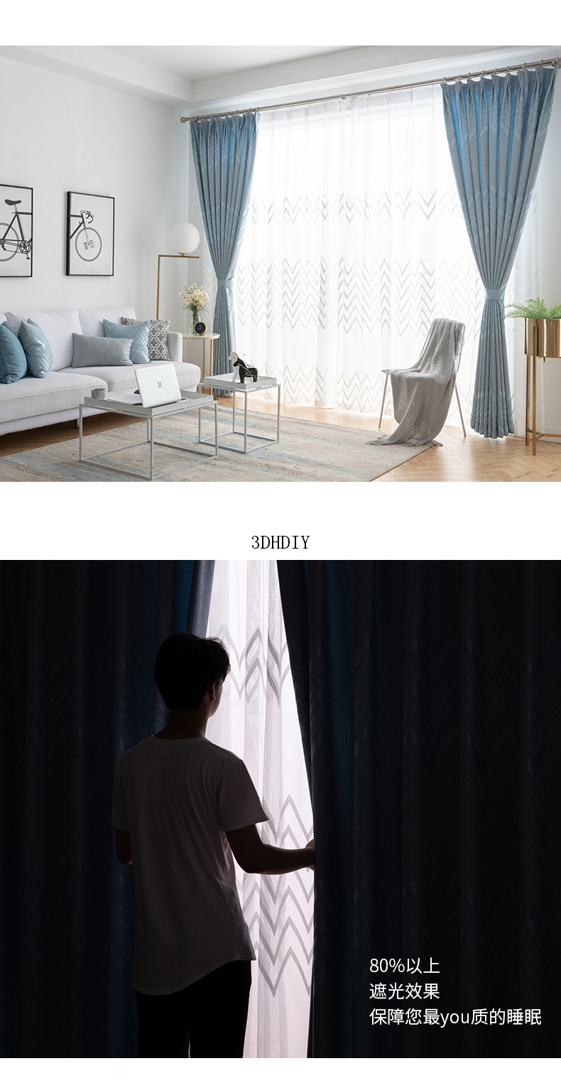 商品名称:窗帘现代简约北欧风提花遮光轻奢ins风窗纱卧室客厅飘窗成品定制