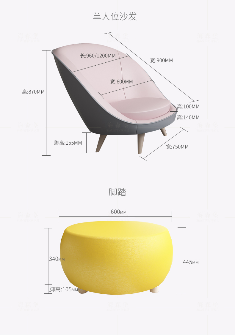 商品名称:天伦之乐 暗恋二人位沙发(黄、粉、绿)