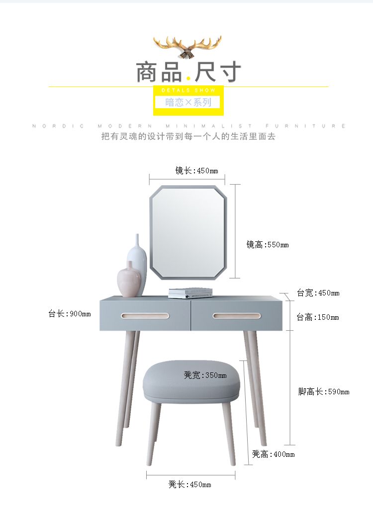 商品名称:天伦之乐 暗恋0.9米梳妆台/妆凳