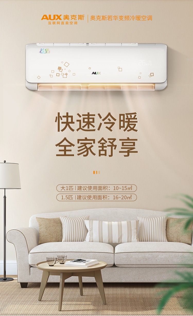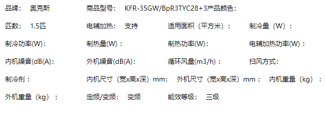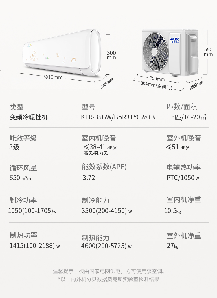 商品名称:奥克斯空调(AUX)1.5匹变频 快速冷暖 智能电辅热 自清洁 静音壁挂式家用卧室空调挂机 极速侠升级款 KFR-35GWBpR3TYC28+3