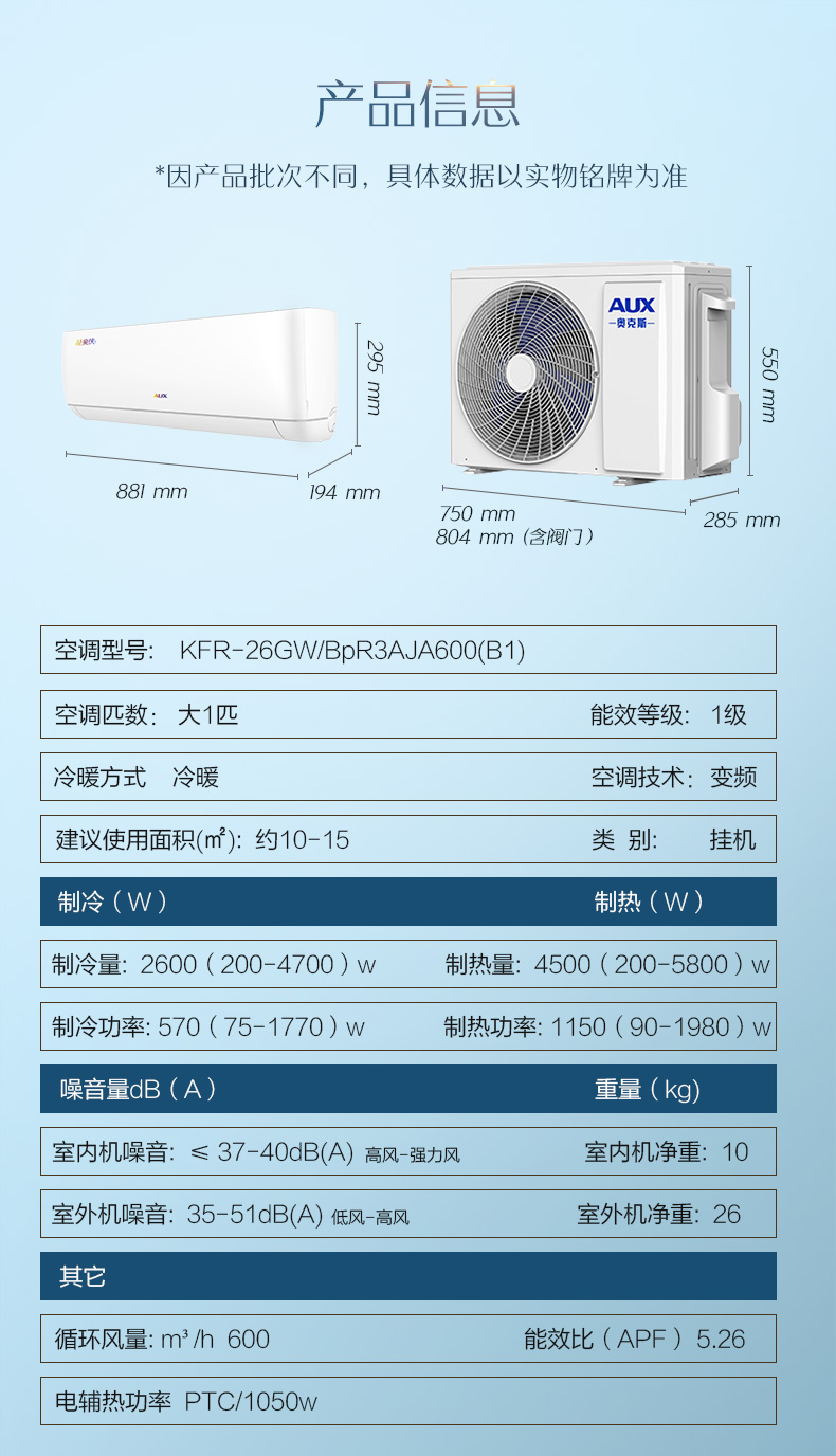 商品名称:奥克斯空调(AUX)1匹 新一级能效空调 静音节能 自清洁壁挂式家用空调