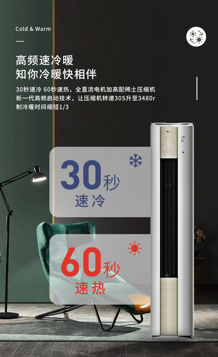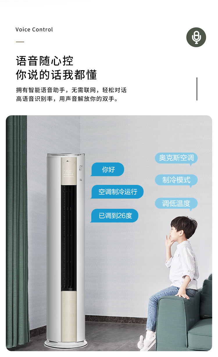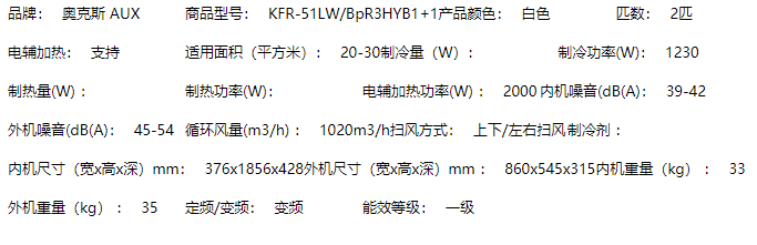 商品名称:奥克斯空调 (AUX) 2匹 一级能效 变频冷暖 30秒速冷 语音智能 空调立式 京轩客厅空调柜机