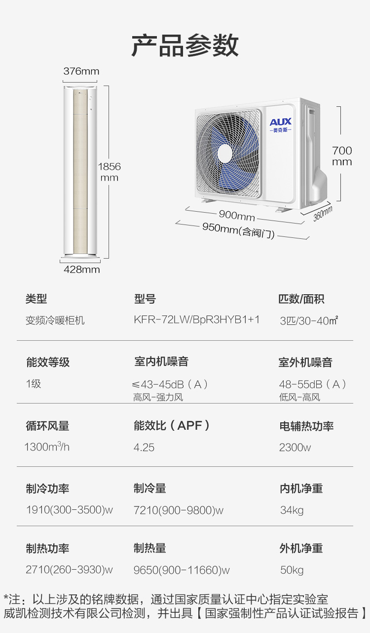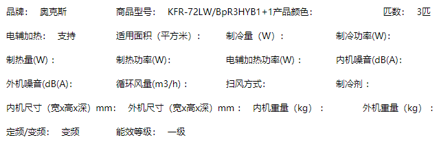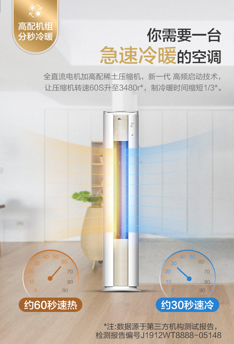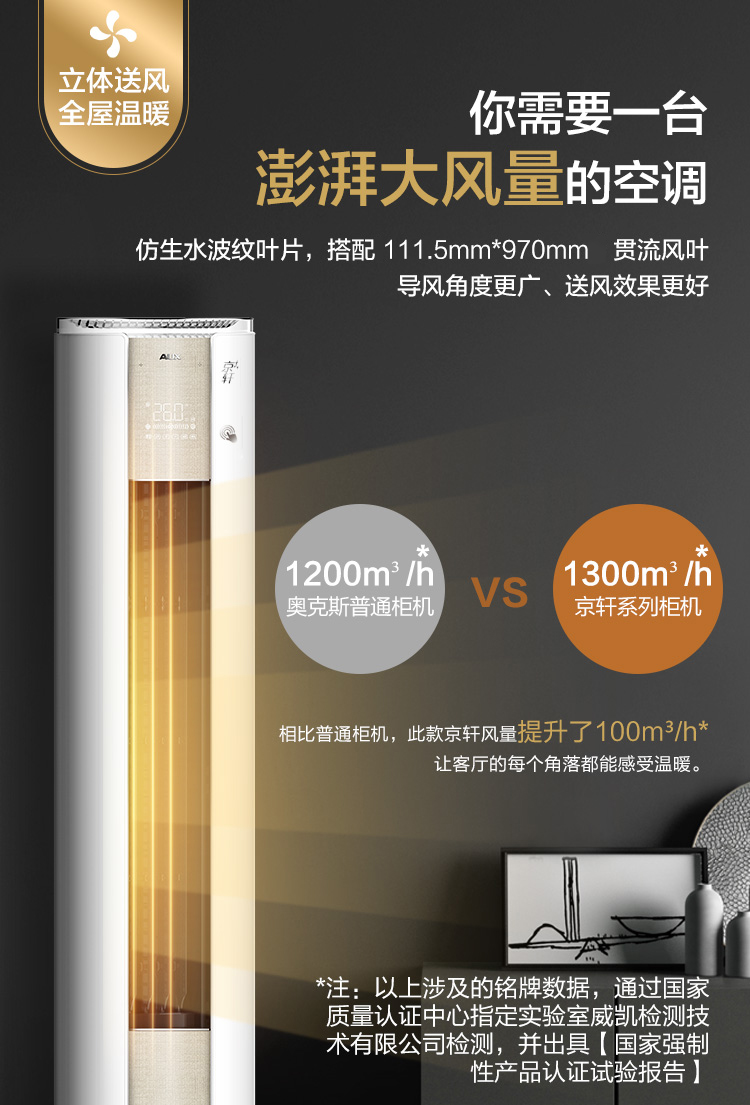 商品名称:【G】奥克斯空调 (AUX) 3匹 一级能效 变频冷暖 60秒速热 语音智能 空调立式 京轩客厅空调柜机