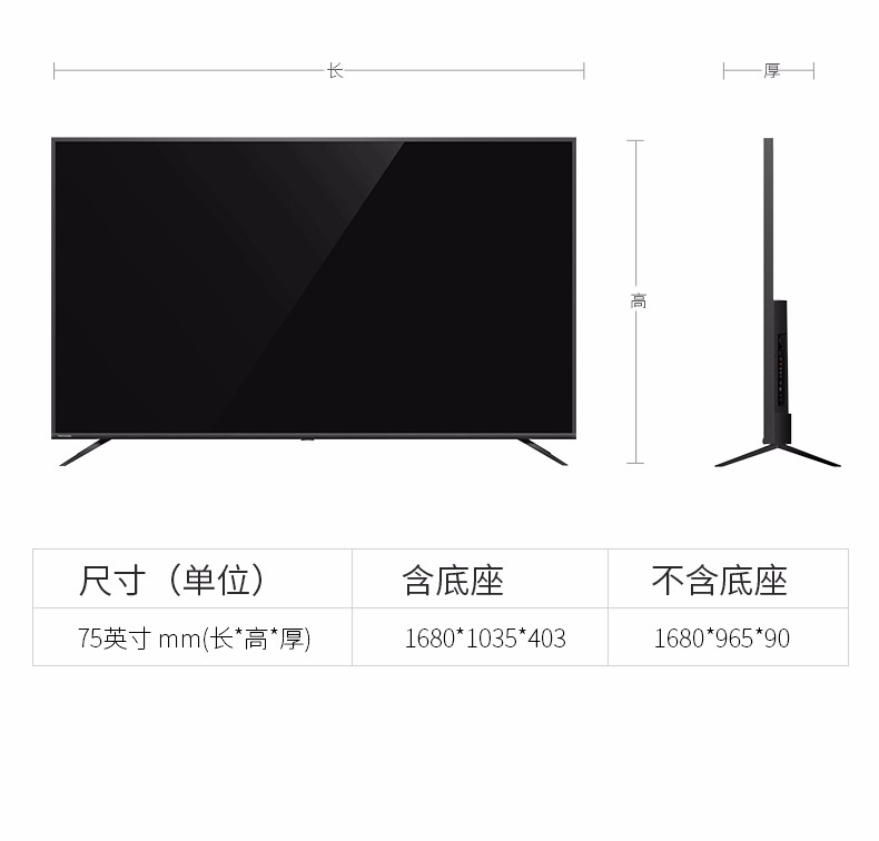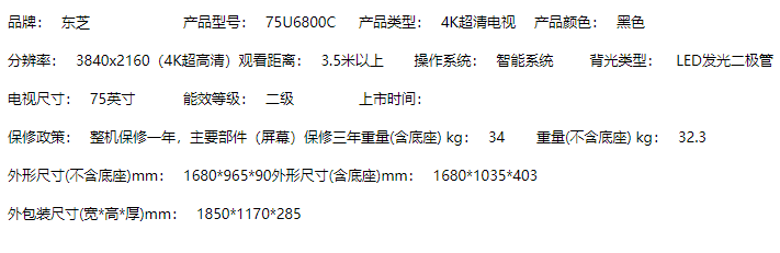 商品名称:【H】东芝(TOSHIBA) 75英寸人工智能4K超高清液晶电视机 火箭炮音效 语音遥控