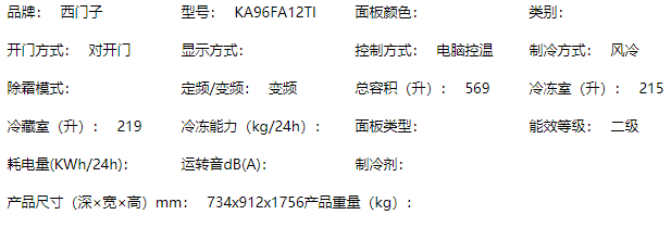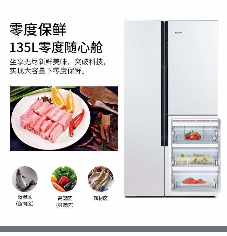 商品名称:西门子 变频对开门冰箱零度无霜保鲜