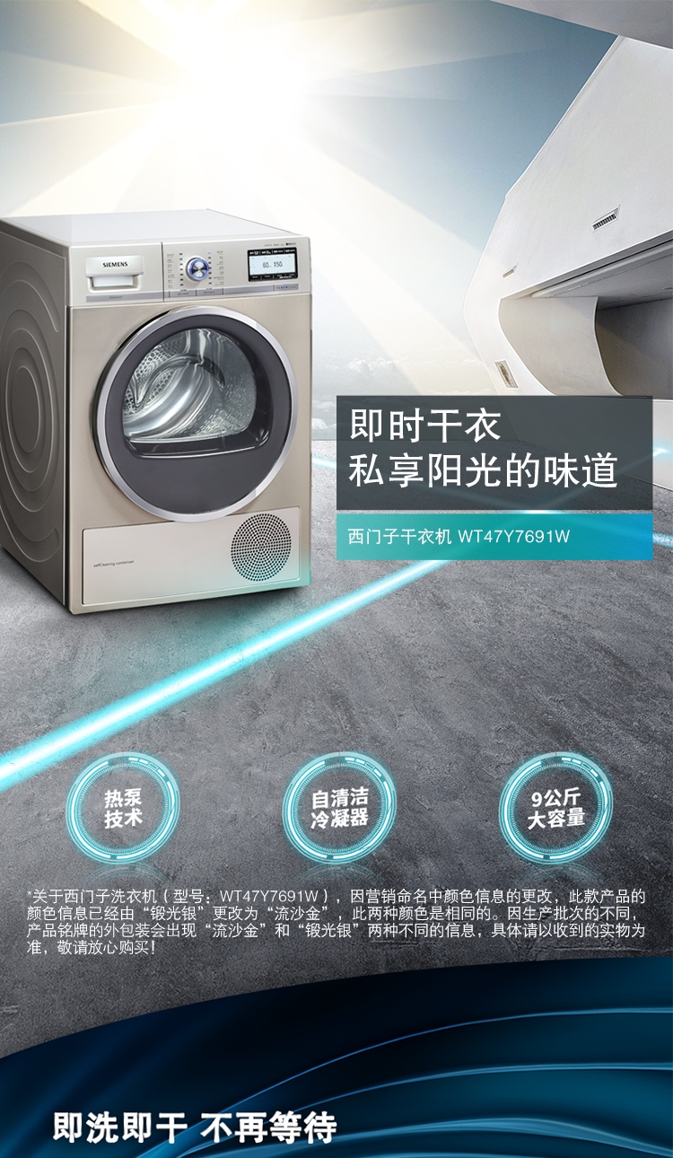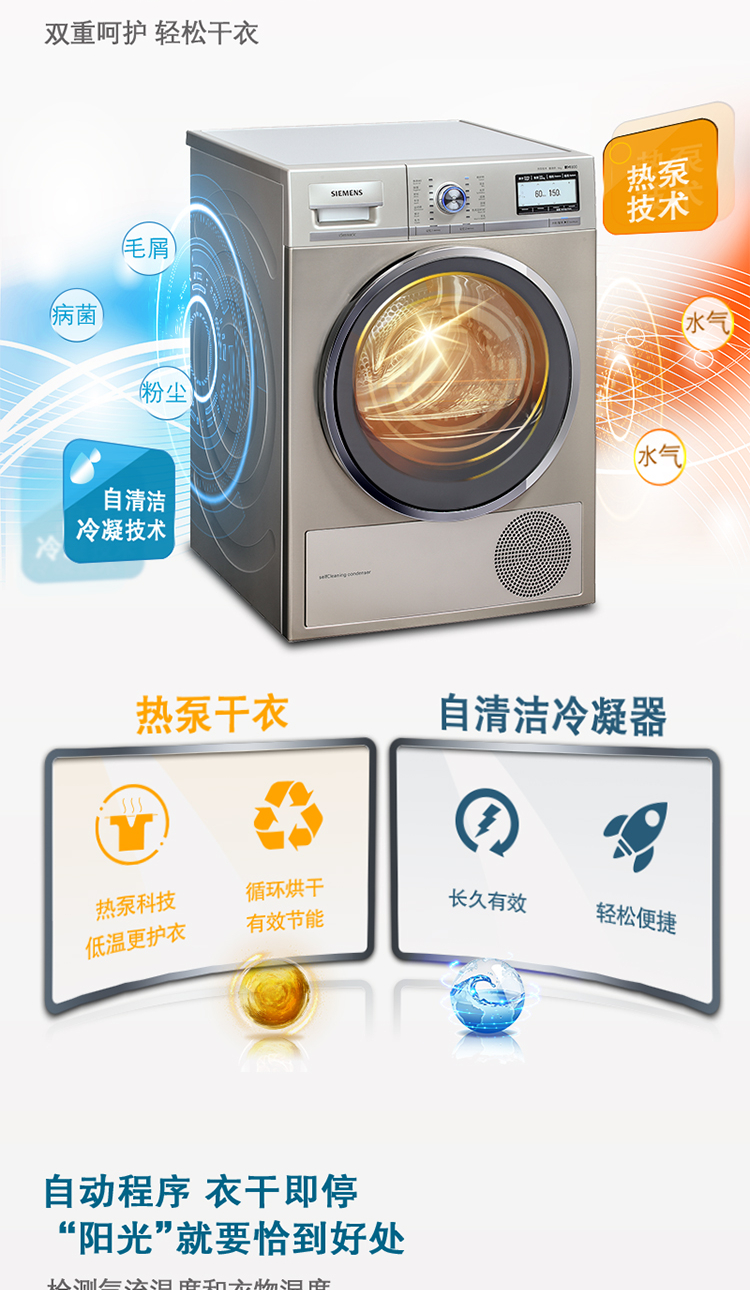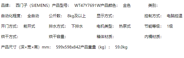 商品名称:西门子(SIEMENS) 9公斤干衣机烘干机 液晶触摸 热泵烘干 原装进口