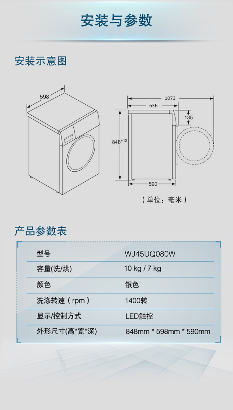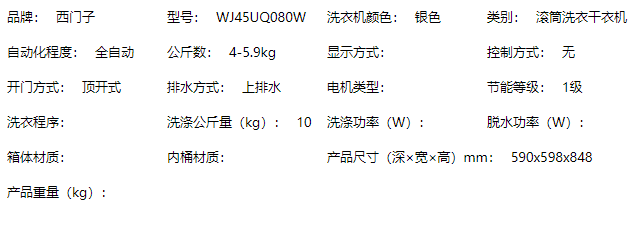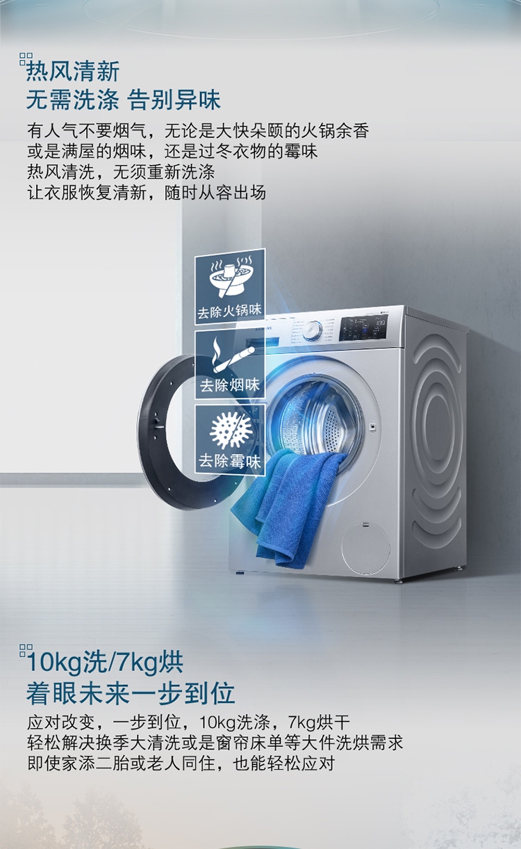 商品名称:西门子洗衣机 10公斤洗7公斤烘洗烘一体机 全自动变频滚筒 1400转