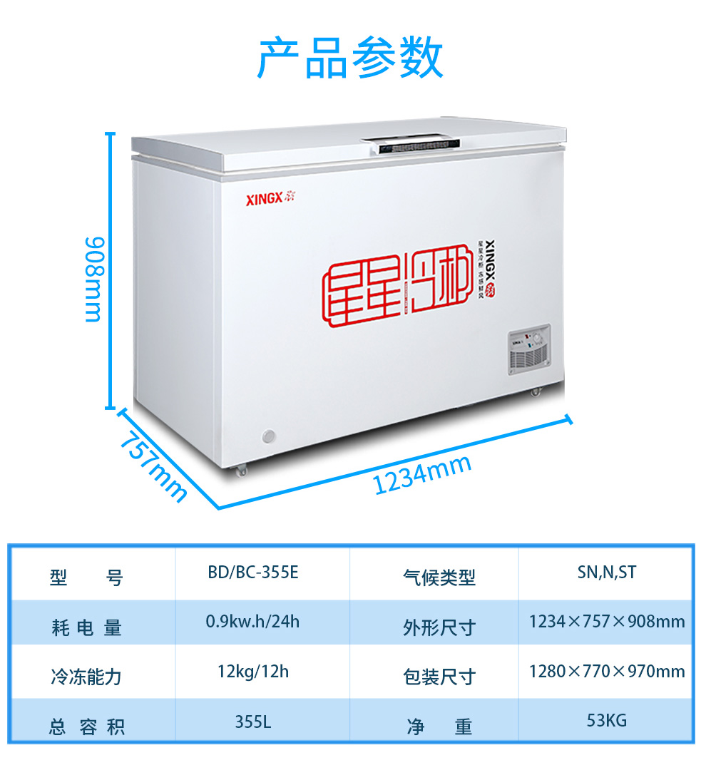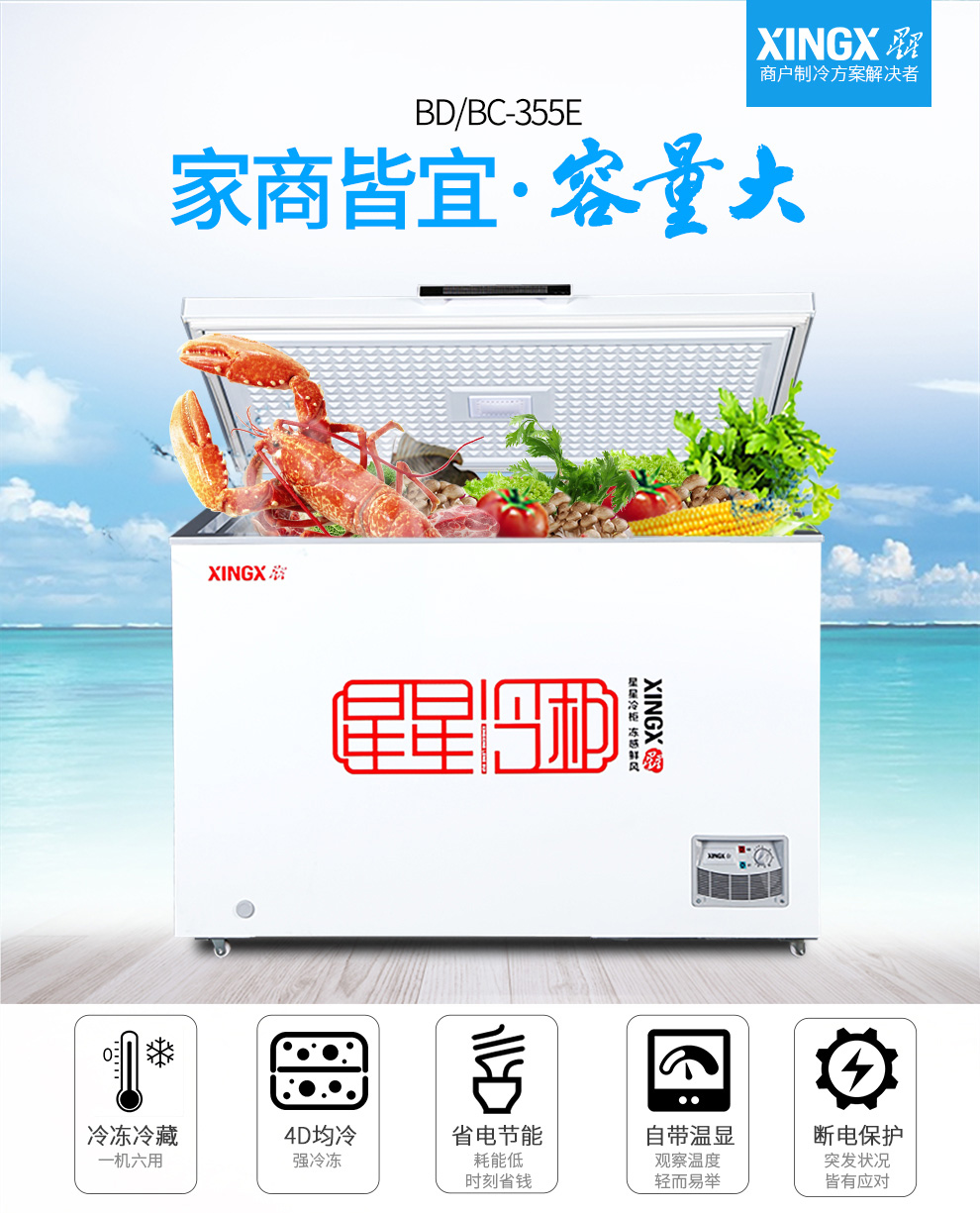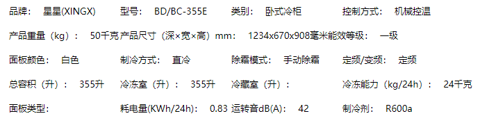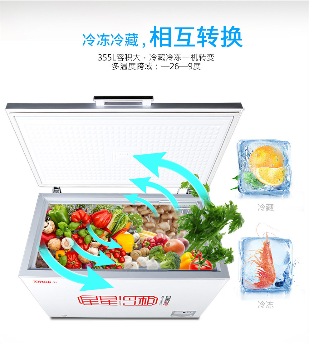 商品名称:星星(XINGX) 355升 冰柜 卧式冷柜 冷藏冷冻转换单温柜 顶开门 商用 一级能效温度显示