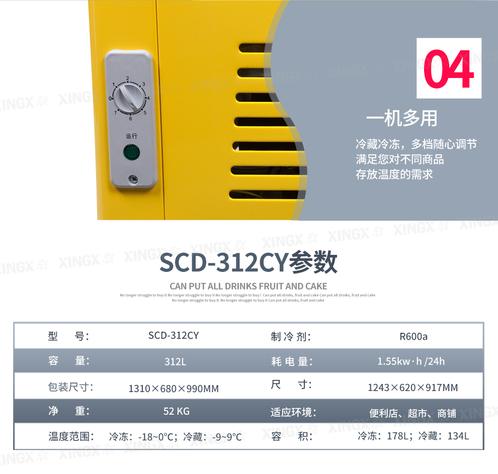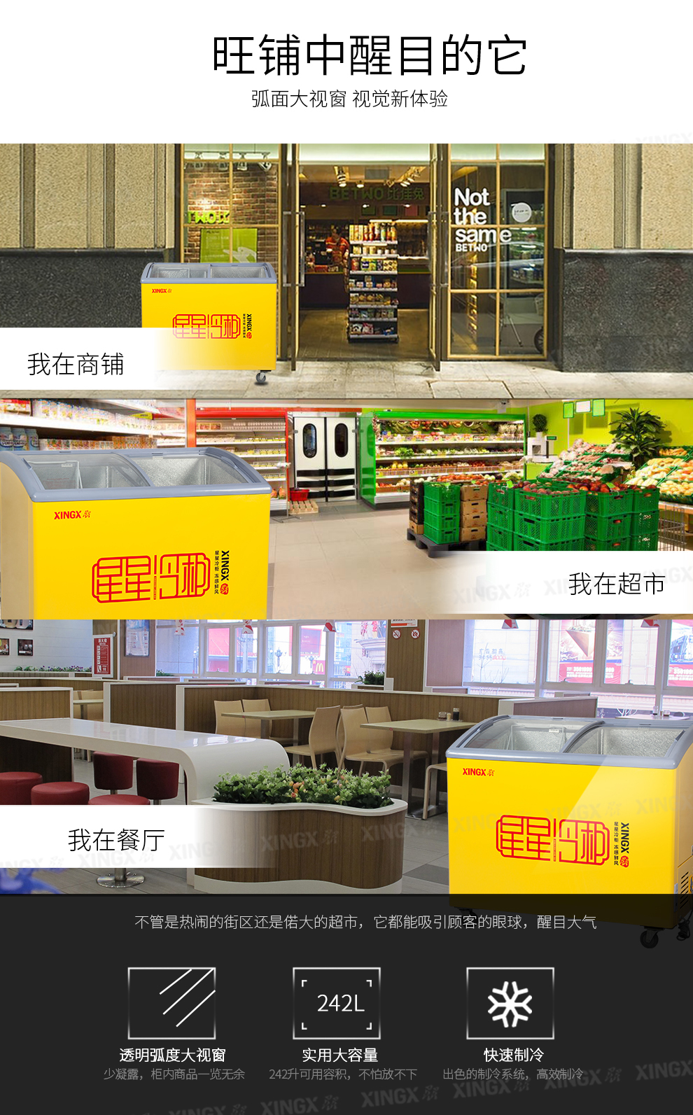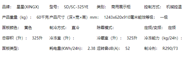 商品名称:【S】星星(XINGX) 325升 商用 展示柜 保鲜柜 冷藏柜 卧式 冰柜 冷柜 饮料柜 推拉门