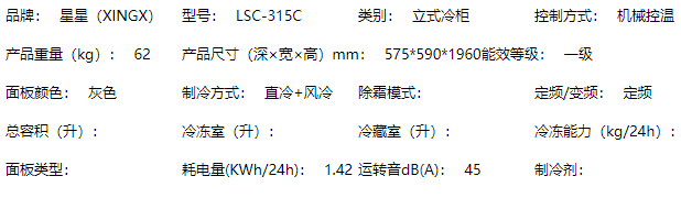商品名称:【S】星星冷柜 保鲜展示柜 立式冷藏 饮料柜 单门