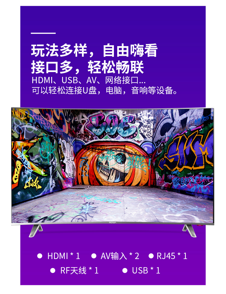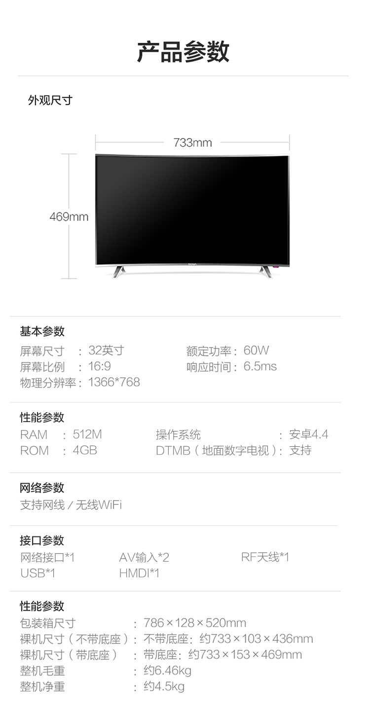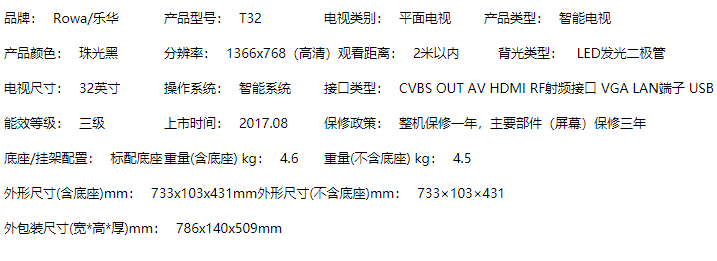 商品名称:【H】 乐华电视(ROWA)T32 32英寸 高清曲面 25和配置 人工智能 网络WiFi 安卓智能LED液晶电视(黑色)