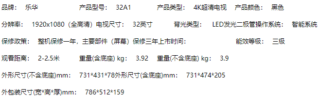 商品名称:【H】乐华电视(ROWA)32A1