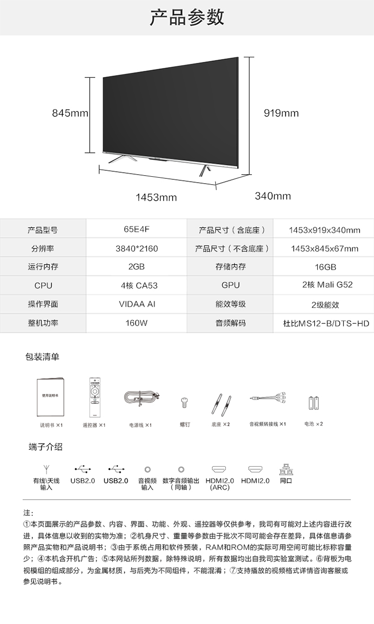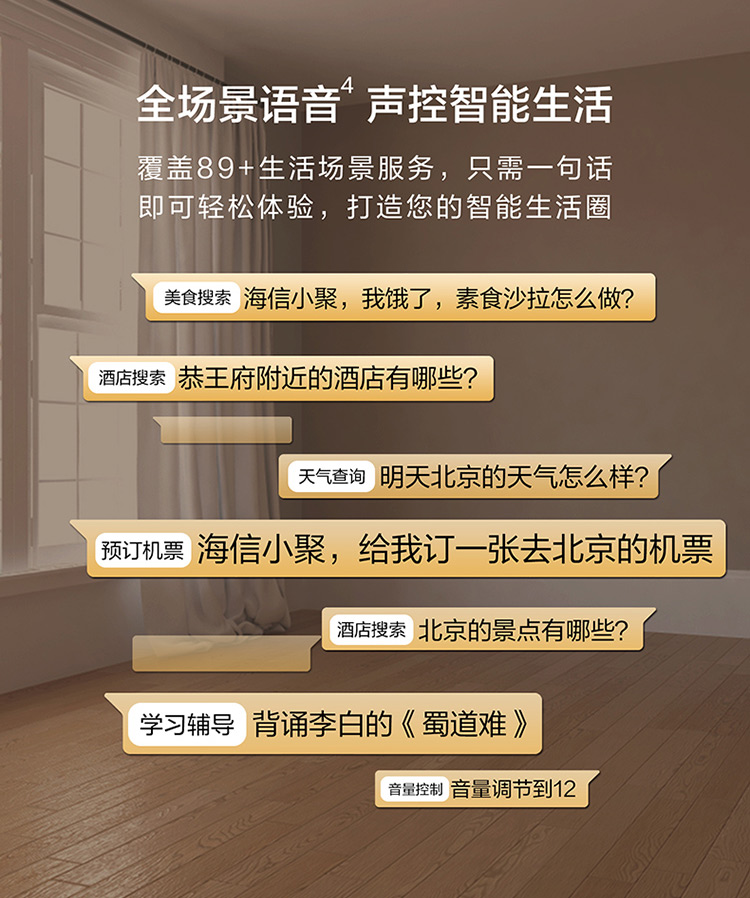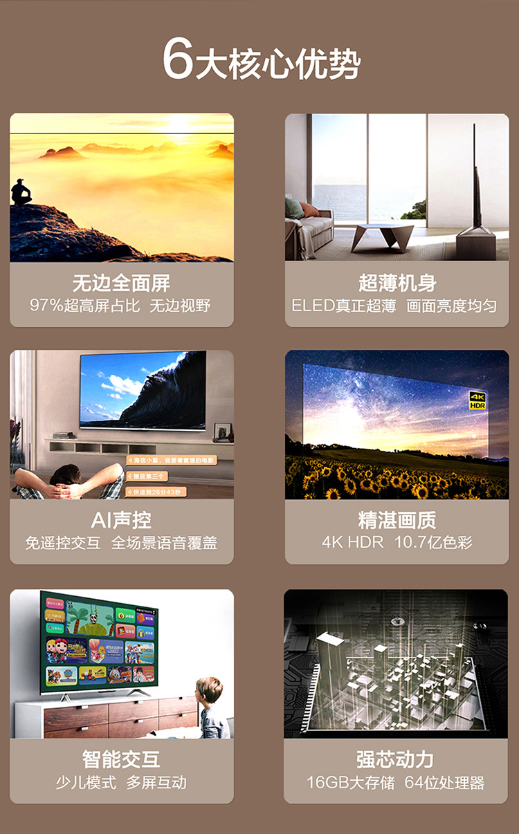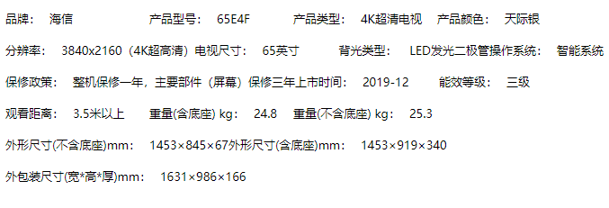 商品名称:【H】海信电视(Hisense) 65英寸 4K超清 HDR AI声控 ELED超薄全面屏 智能交互 教育资源 人工智能 液晶平板电视机