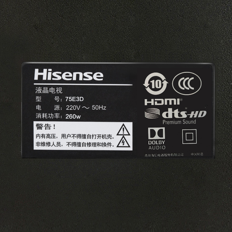 商品名称:【Y】Hisense/海信电视 75英寸4K高清智能网络平板液晶电视机