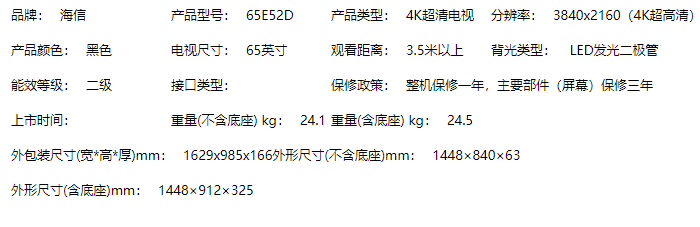 商品名称:【Y】海信电视