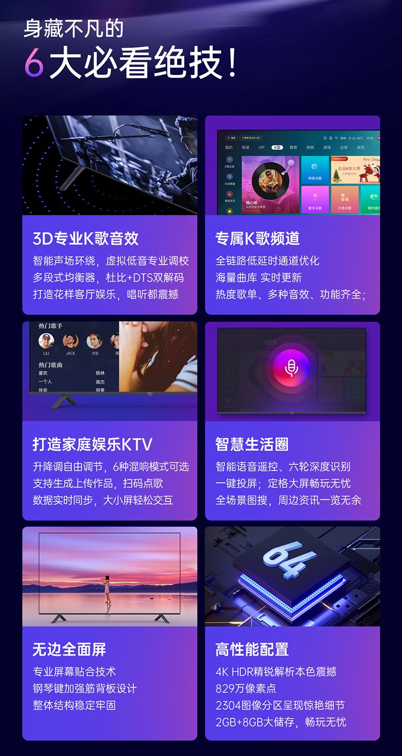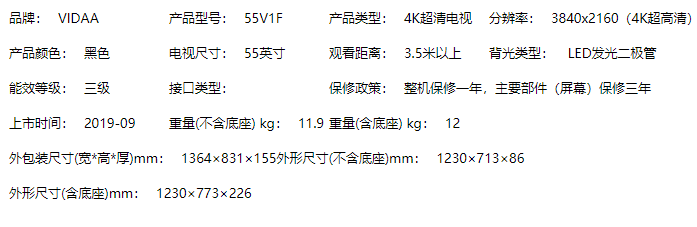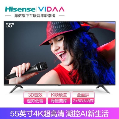 商品名称:海信电视 VIDAA 55英寸 4K超高清 全面屏电视 K歌电视 2G+8G 教育电视 人工智能语音网络液晶平板电视