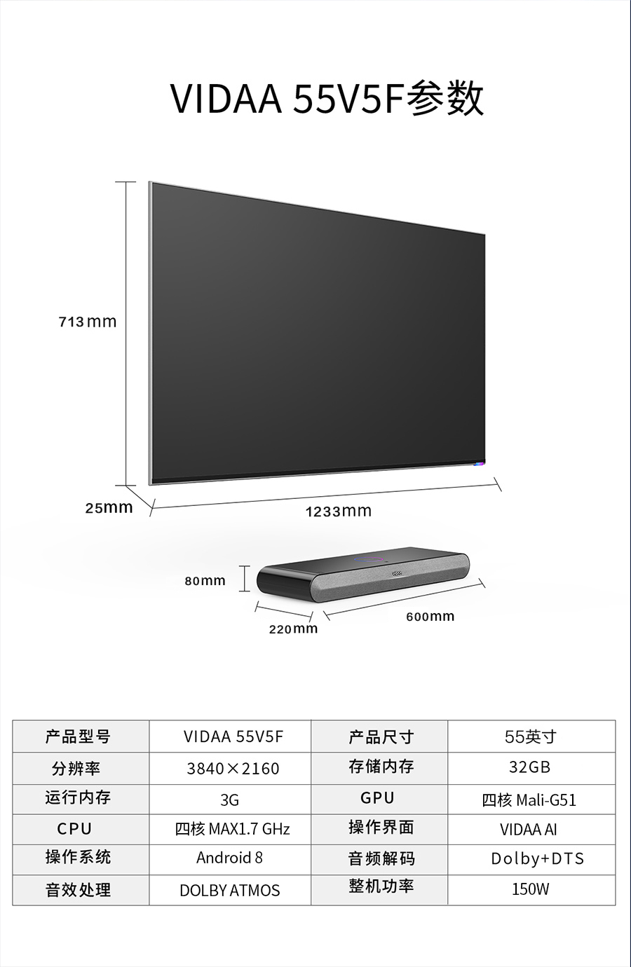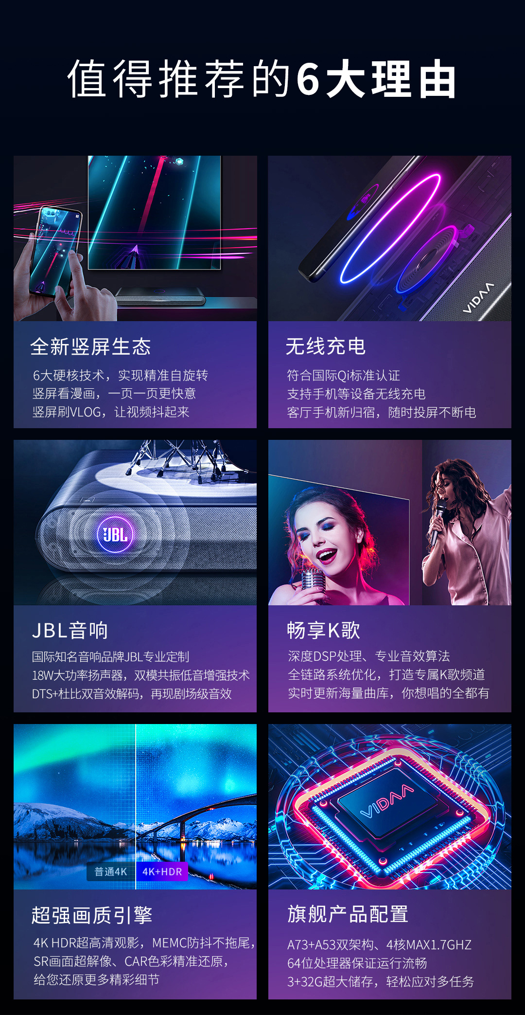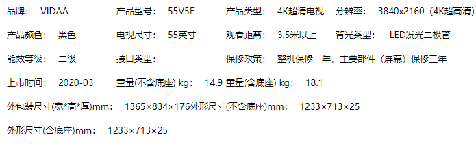 商品名称:海信电视 VIDAA 55英寸 旋转智屏 竖屏 海信电视 4K超高清 3G+32G 远场语音 教育电视 人工智能平板电视