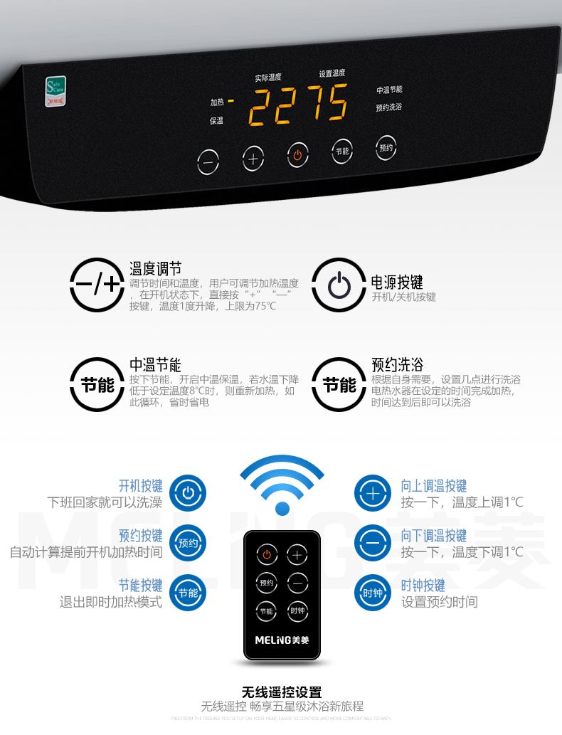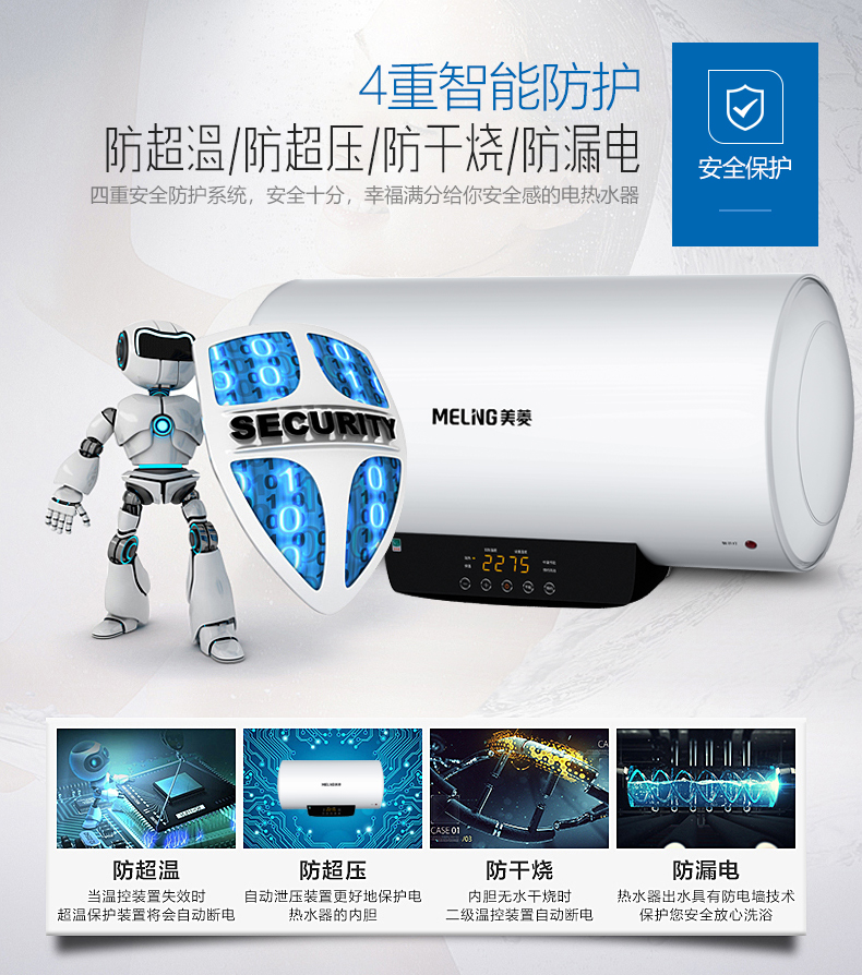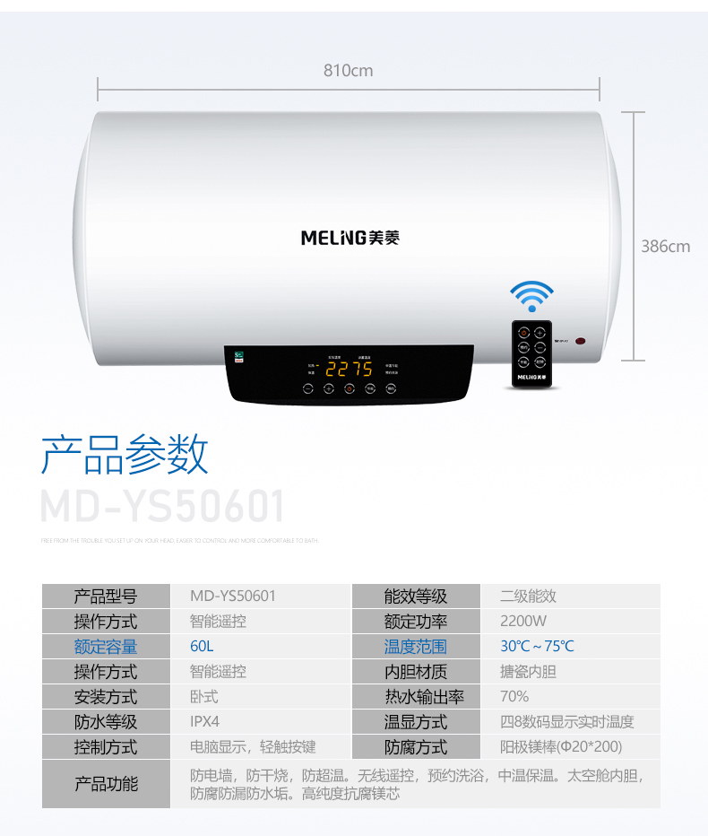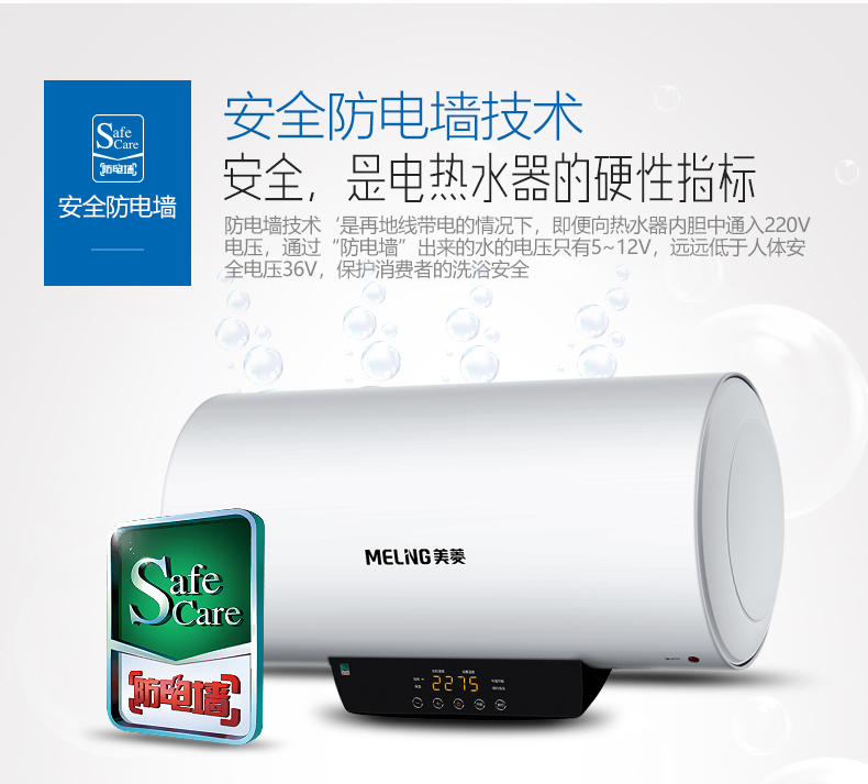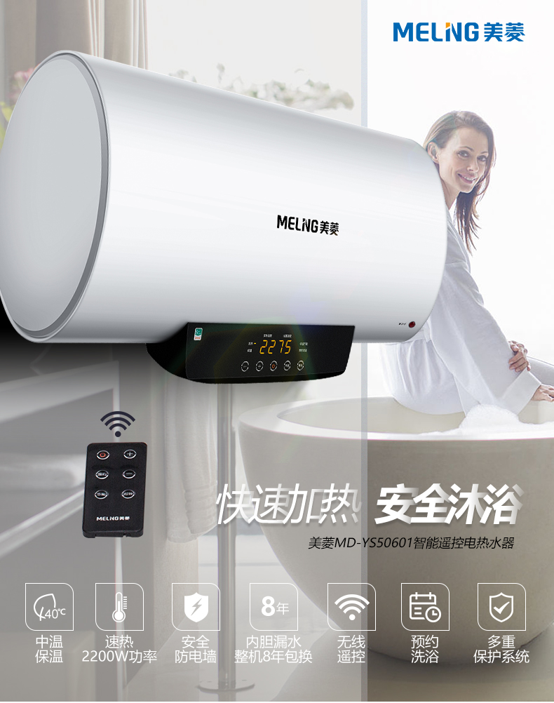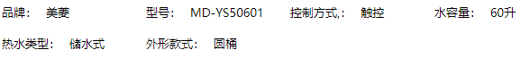 商品名称:【Y】美菱电热水器60L家用储水式2200W电控温显 触摸屏