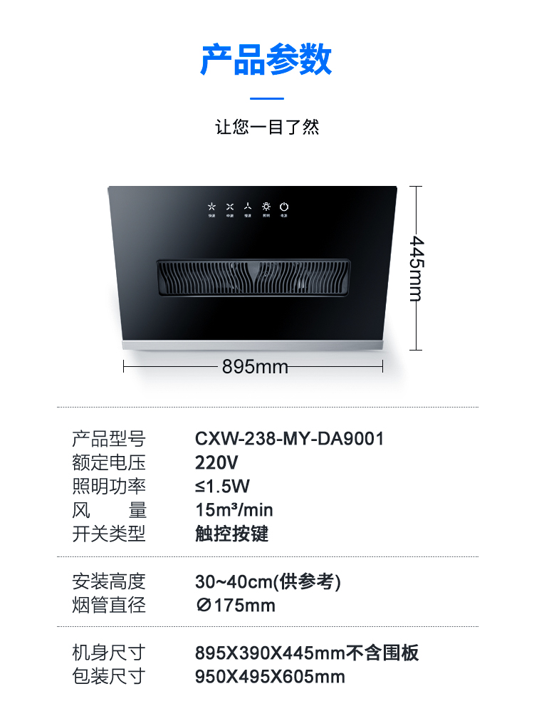 油烟机家用侧吸钢化玻璃触控面板家用厨房大吸力油烟机