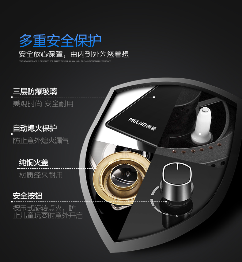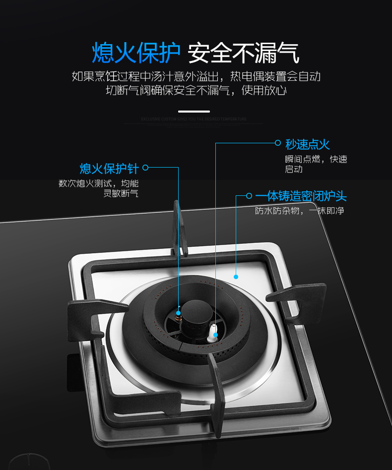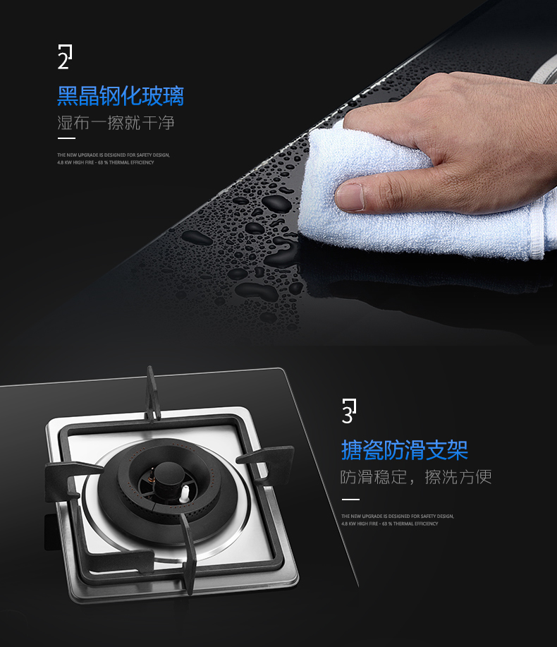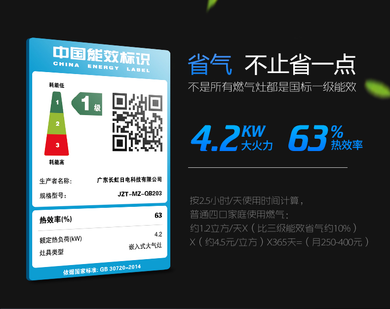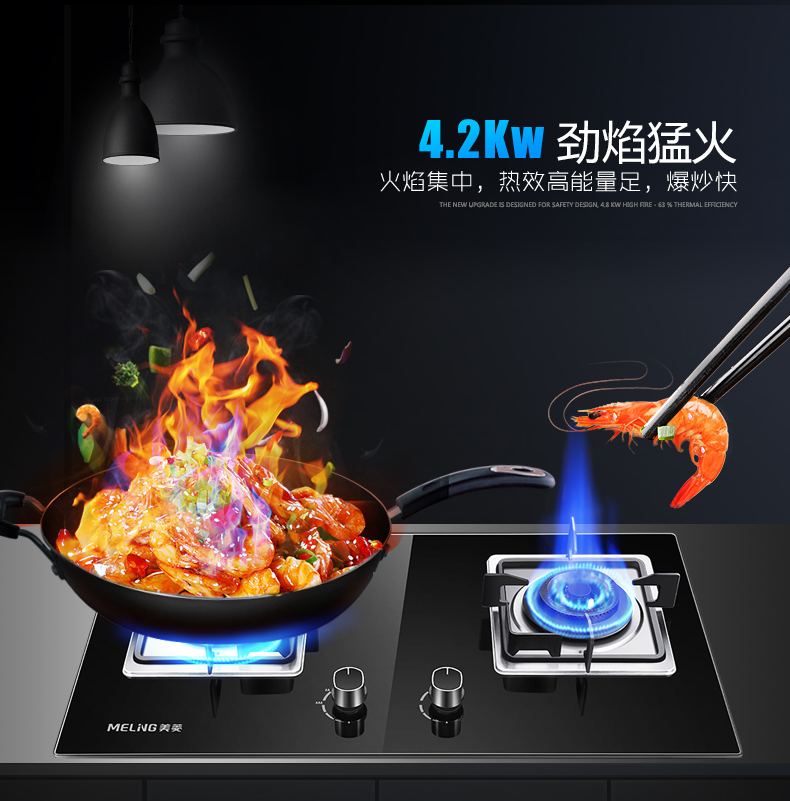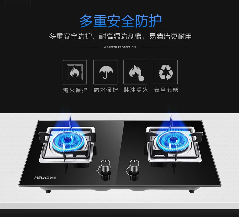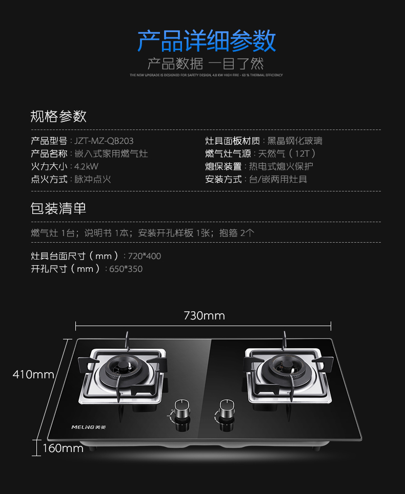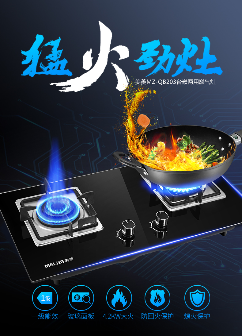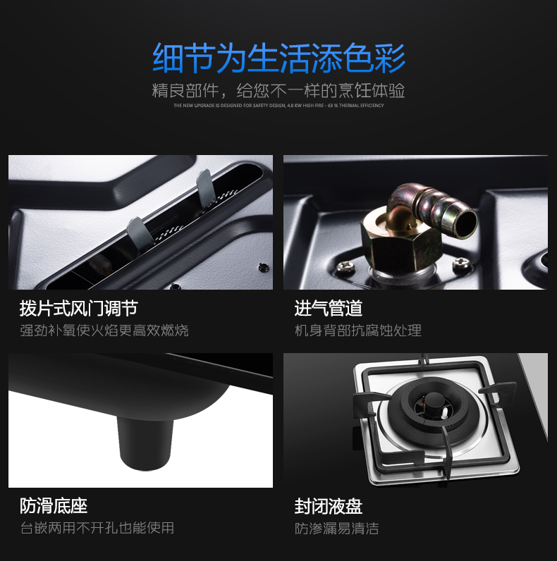燃气灶家用双灶QB203一级能效节能钢化玻璃面板天然液化气灶