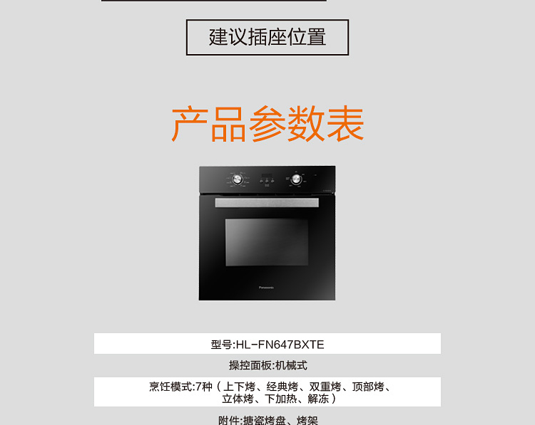 商品名称:松下(Panasonic)烤箱家用嵌入式电烤箱70L烘焙多功能70升7段加热