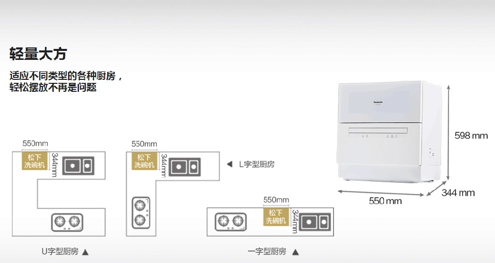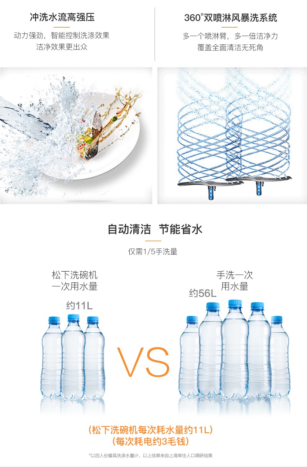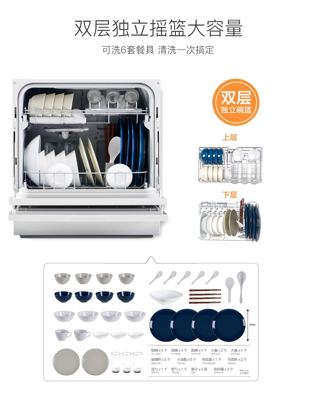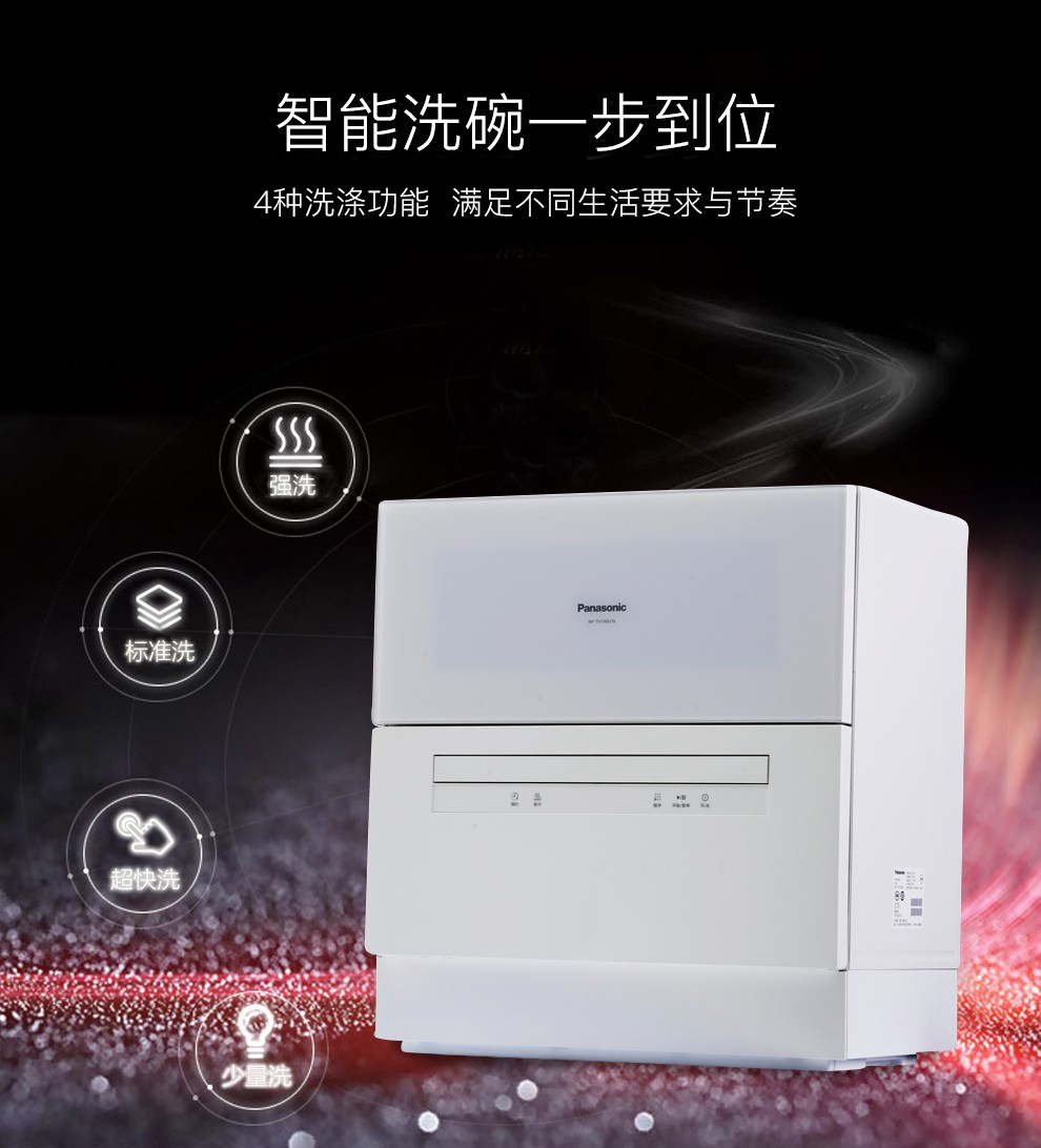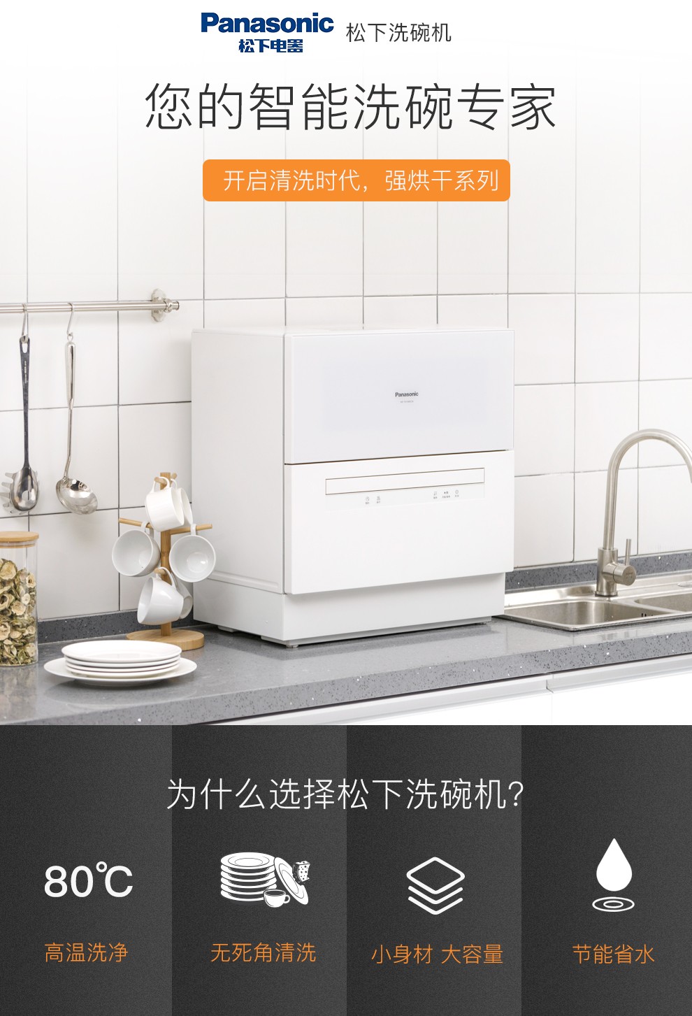 商品名称:松下(Panasonic)6套容量洗碗机 除菌独立烘干 双层碗篮台式(金色)白色