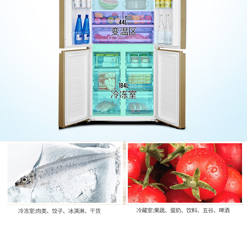 商品名称:松下十字对开门变频风冷无霜家用电冰箱-3℃微冻498L