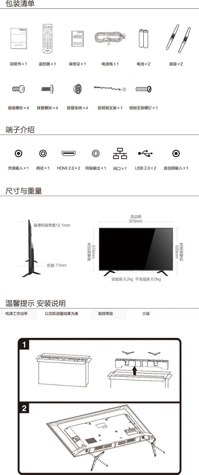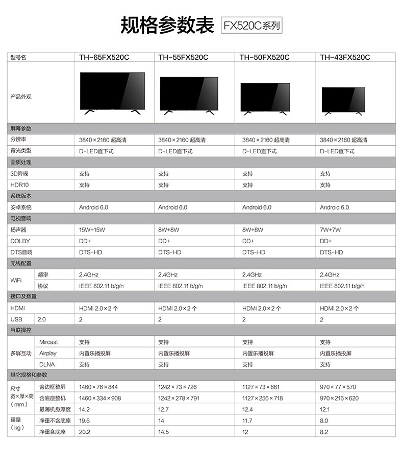 商品名称:松下电视 75英寸4K超高清HDR智能网络液晶平板电视机新款 75英寸 松下电视机