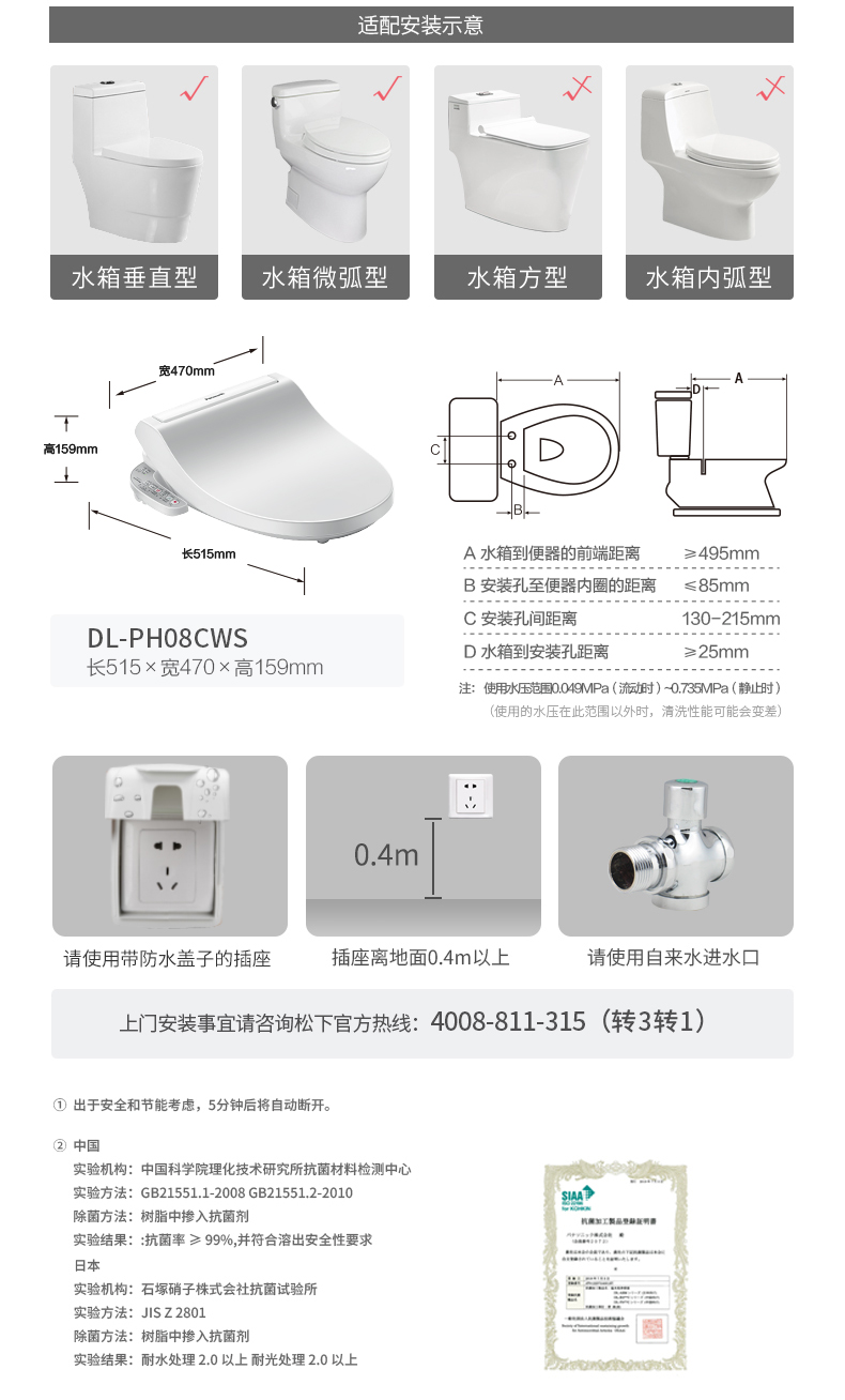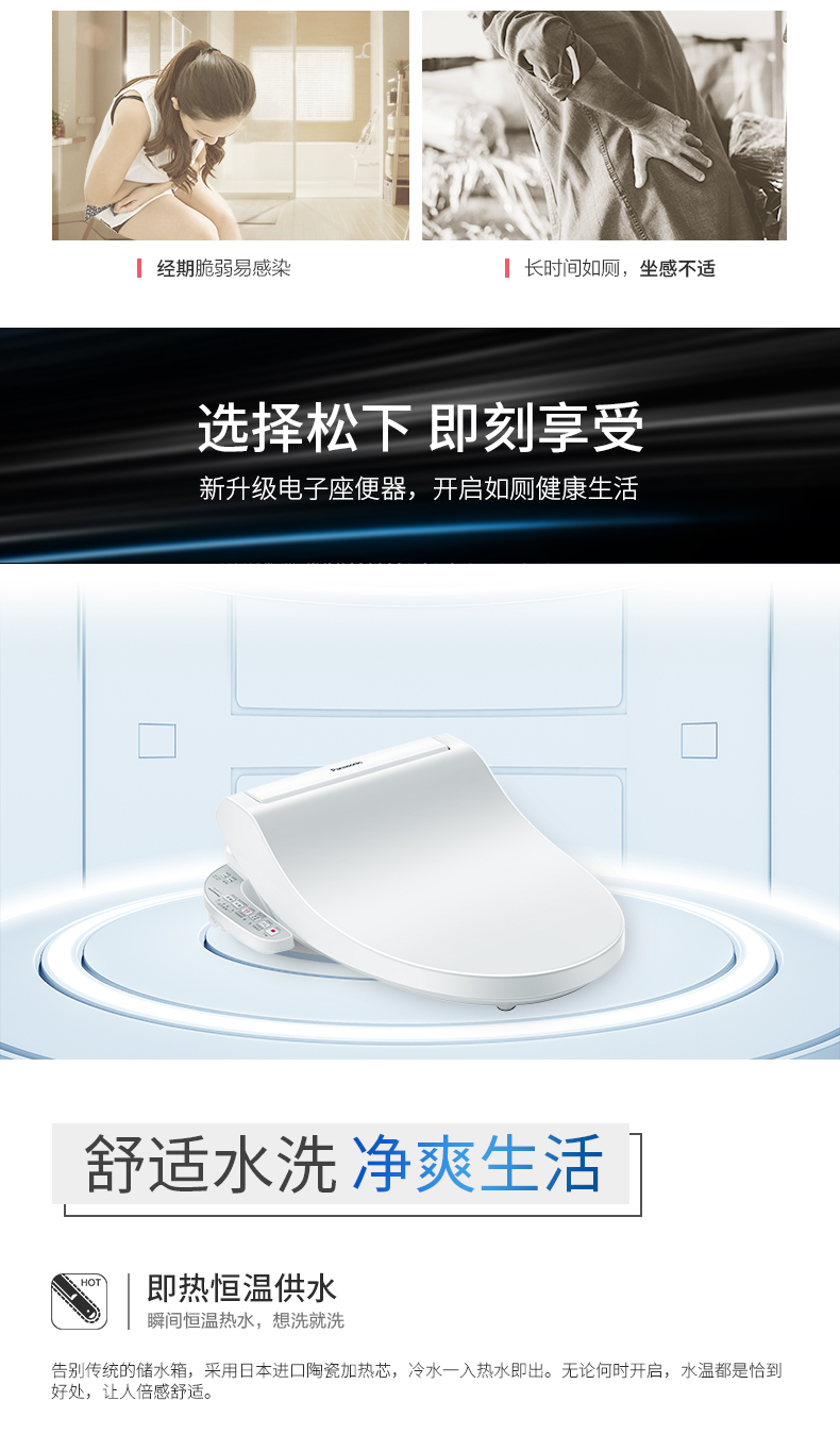 商品名称:Panasonic松下洁乐智能马桶盖日本电动坐便器盖板洁身即热式全自动冲洗器