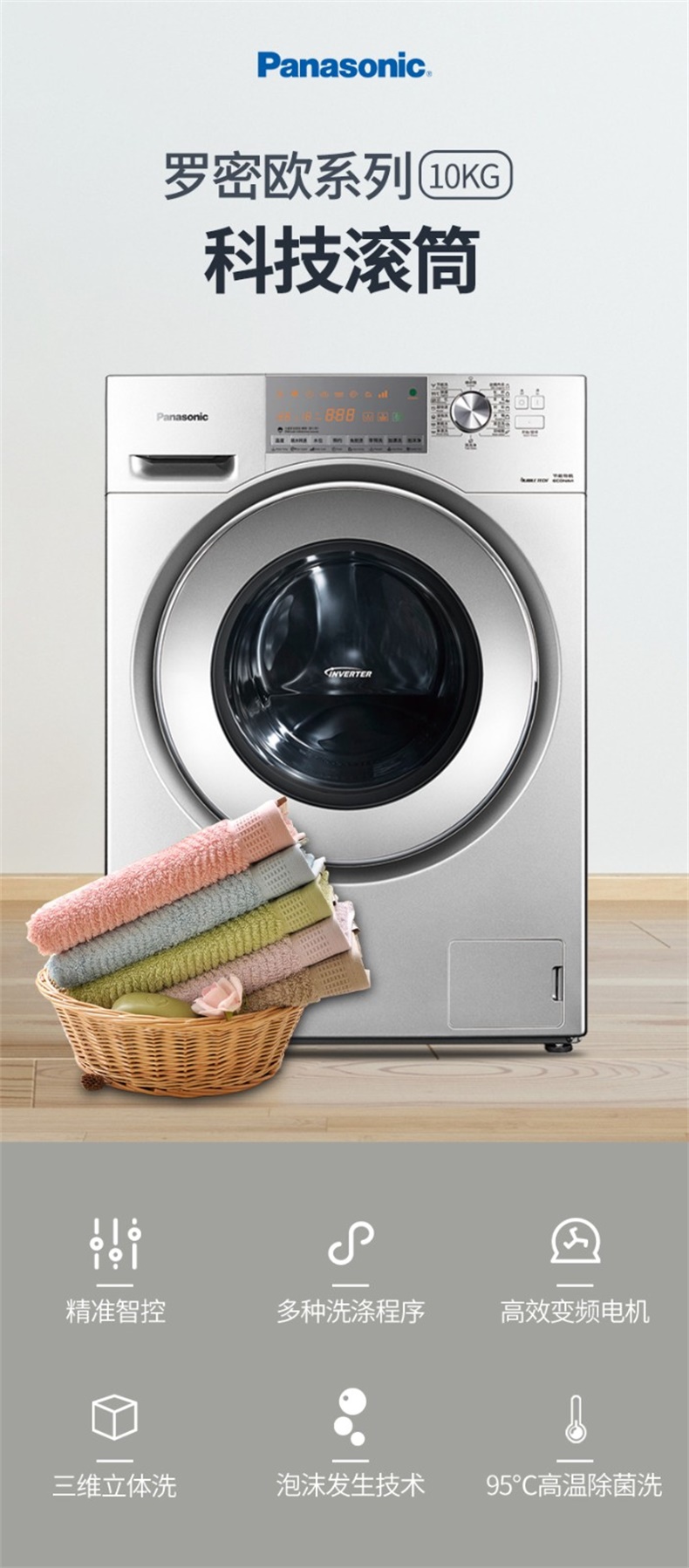 商品名称:松下(Panasonic) 10公斤大容量变频全自动滚筒洗衣机 金色