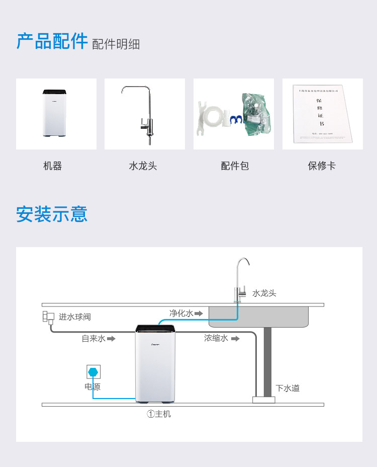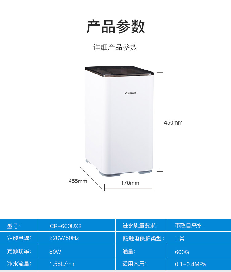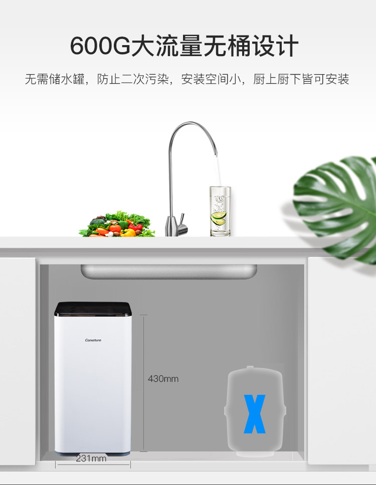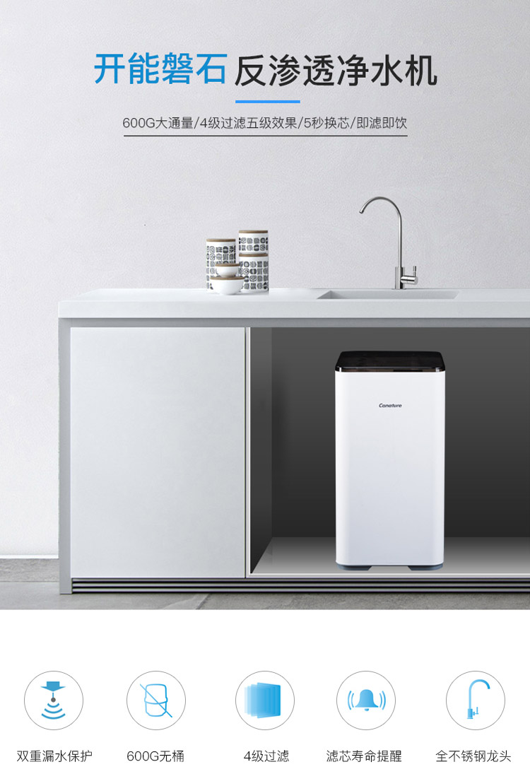 商品名称:开能奔泰(Canature)净水器家用 RO反渗透厨房自来水过滤器直饮纯水机600G大流量 cr-600ux2