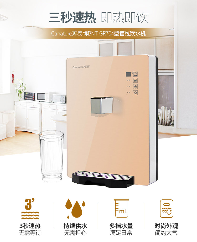 商品名称:开能奔泰(Canature)壁挂式管线机即热式饮水机直饮机无胆BNT-GR704 【自动温控】BNT-GR704