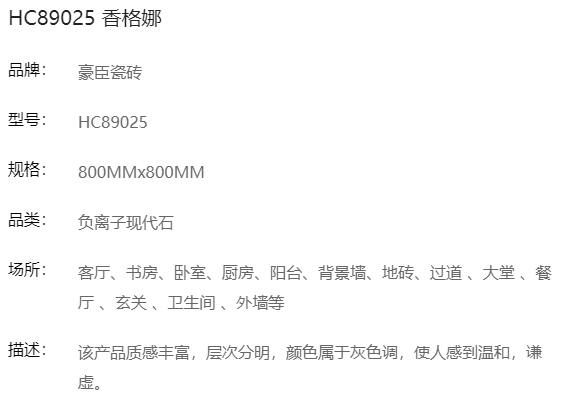 商品名称:豪臣负离子瓷砖 800*800 香格娜