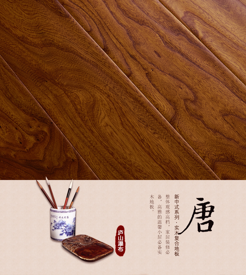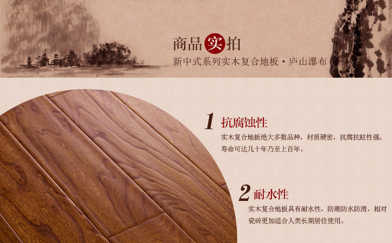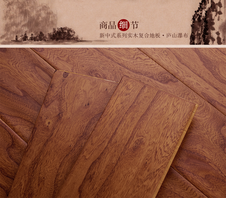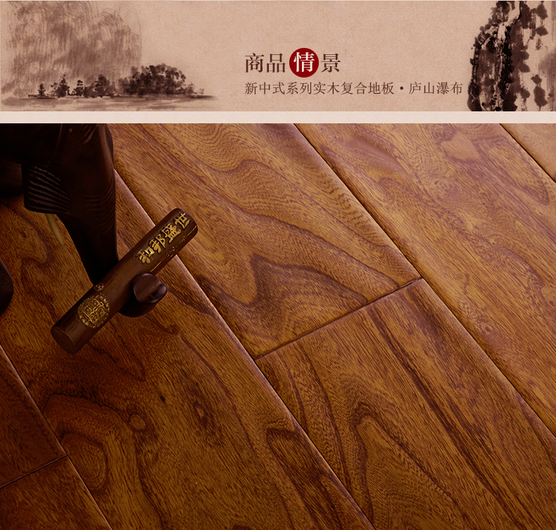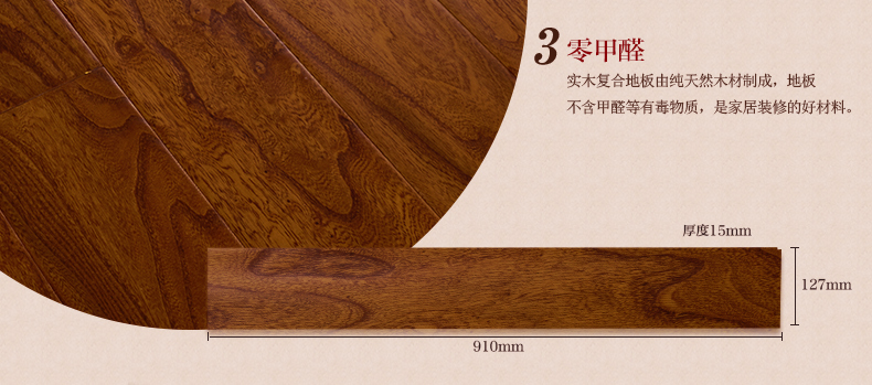 商品名称:复合木地板抗地热15mm花纹靓硬度高榆木复古手刮仿古实木多层地板