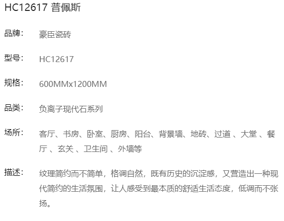商品名称:豪臣负离子瓷砖600*1200 普佩斯
