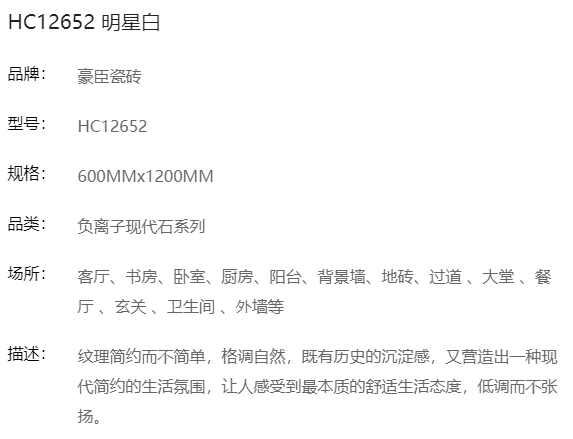 商品名称:豪臣负离子瓷砖600*1200 明星白