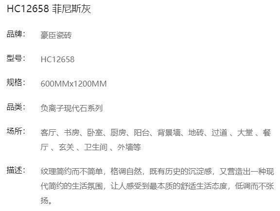 商品名称:豪臣负离子瓷砖600*1200 菲尼斯灰