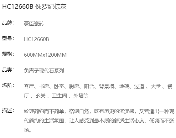 商品名称:豪臣负离子瓷砖600*1200 侏罗纪棕灰