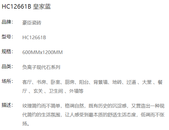 商品名称:豪臣负离子瓷砖600*1200 皇家蓝
