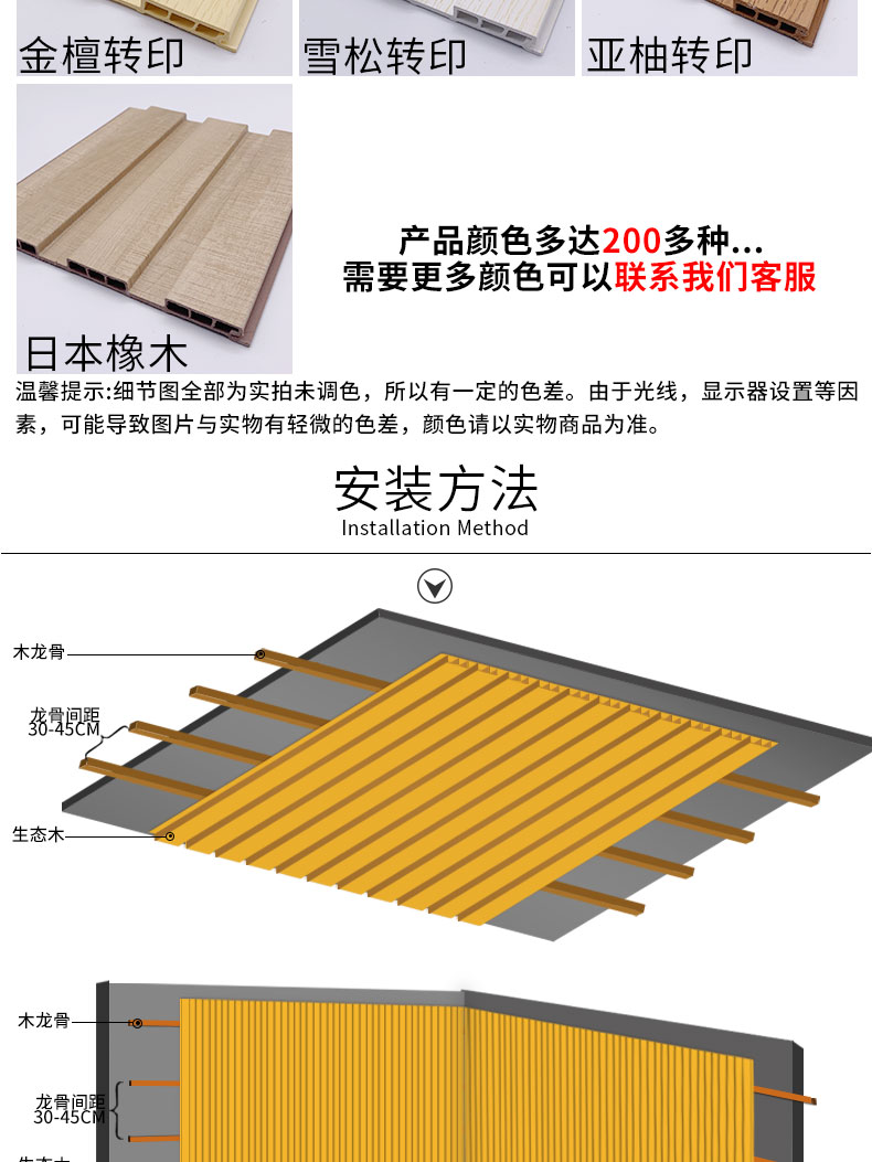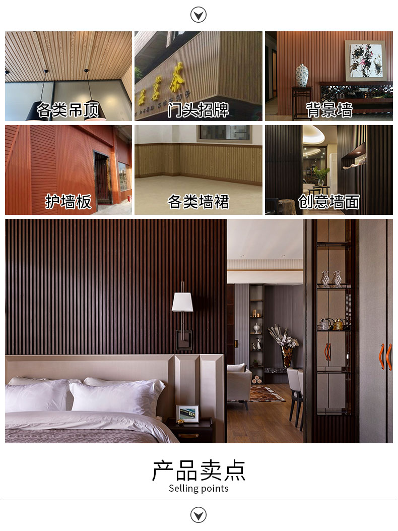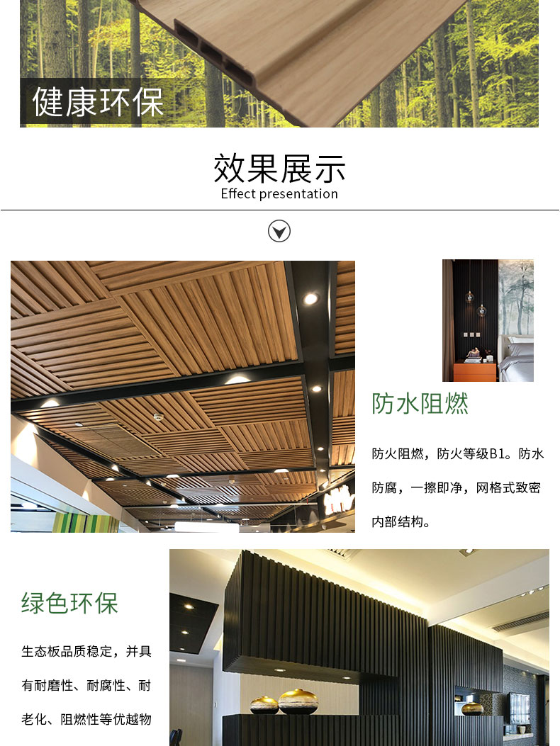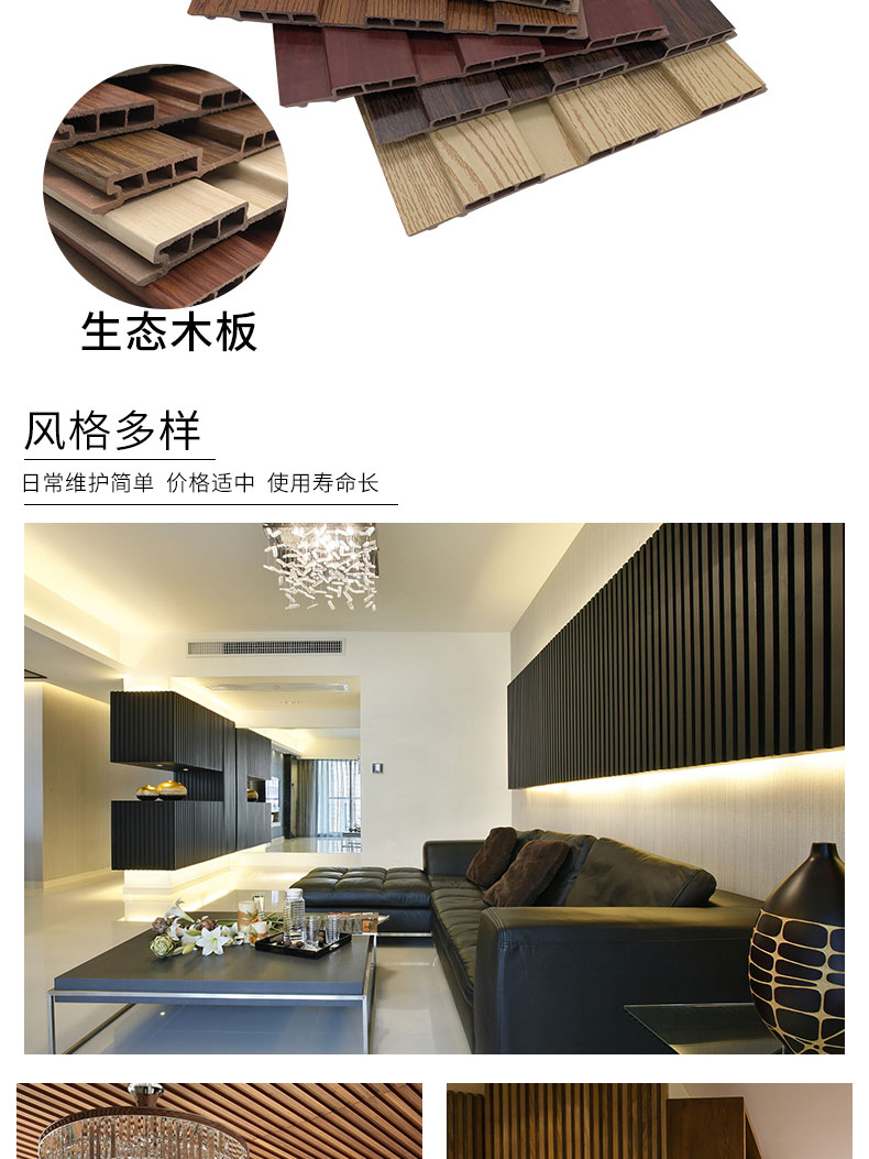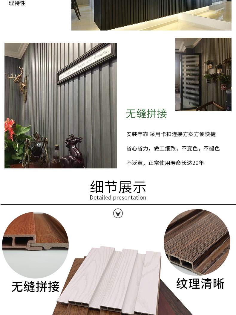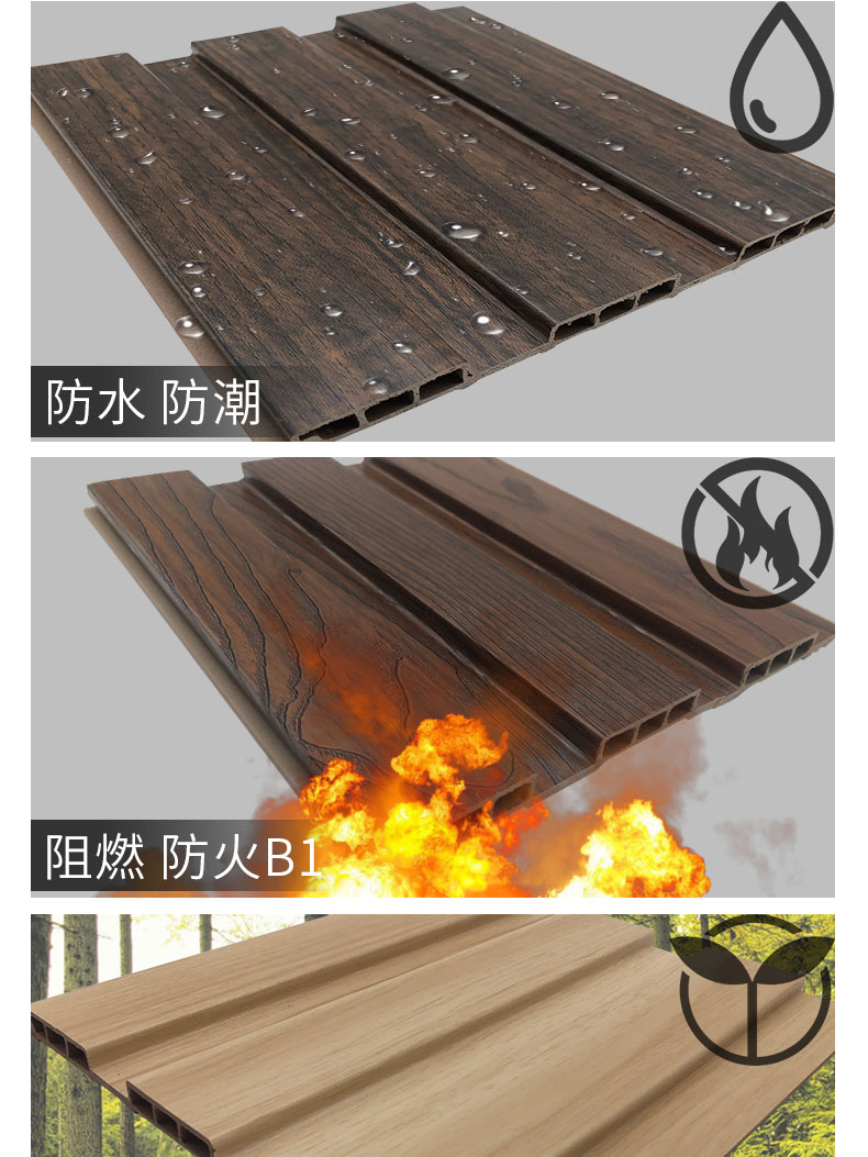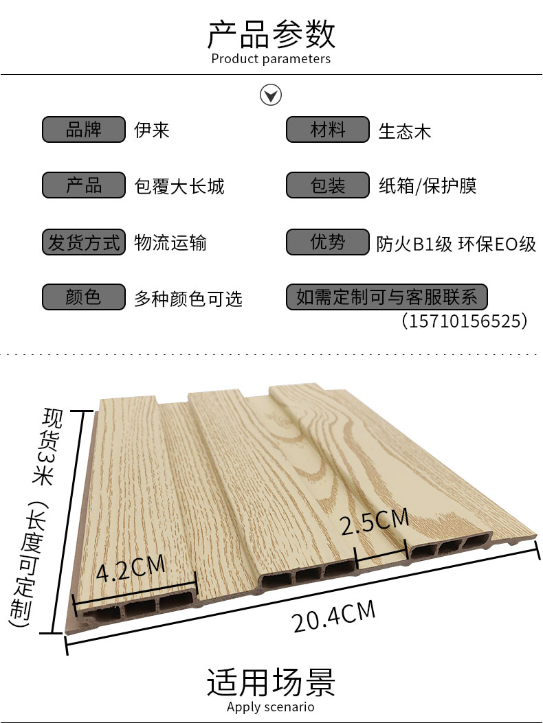 商品名称:生态木吊顶 护墙板伊来大长城板绿可木PVC塑阳台装饰材料裙面背景